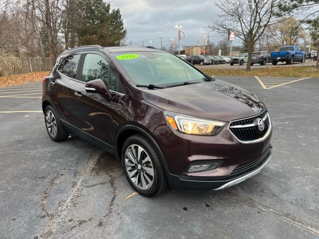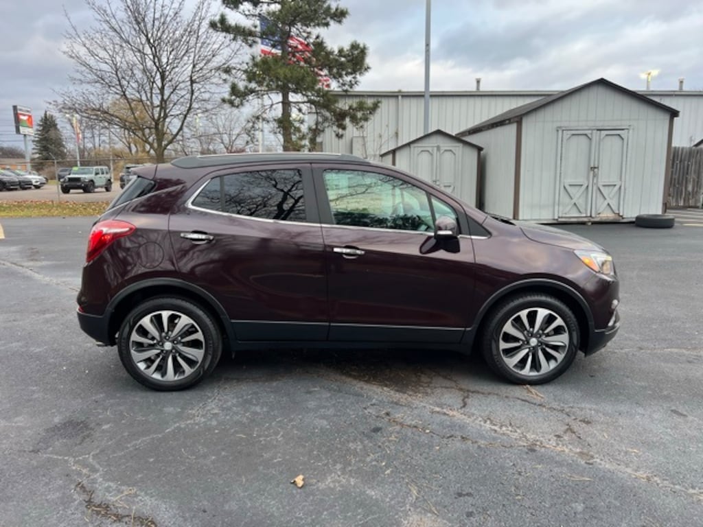 Certified. We are Michigans #1 Certified Pre-Owned Dealer, 3 month 3,000 mile Powertrain Warranty $0 deductible, 3 month / 3000 mile bumper to bumper warranty with no deductible, Encore Preferred II, 4D Sport Utility, ECOTEC 1.4L I4 SMPI DOHC Turbocharged VVT, 6-Speed Automatic Electronic with Overdrive, FWD, Black Cherry Metallic, Brandy/Ebony Accents w/Leather-Appointed Seat Trim, 120-Volt Power Outlet, 6 Speakers, Apple CarPlay/Android Auto, Auto-Dimming Inside Rear-View Mirror, Auto-dimming Rear-View mirror, Brake assist, Compass, Delay-off headlights, Driver door bin, Driver vanity mirror, Driver's Seat Mounted Armrest, Electronic Stability Control, Exterior Parking Camera Rear, Front Bucket Seats, Front Fog Lamps, Illuminated entry, Outside temperature display, Panic alarm, Passenger vanity mirror, Power driver seat, Power windows, Preferred Equipment Group 1SD, Radio data system, Radio: Buick Infotainment System AM/FM Stereo, Rear Cross-Traffic Alert, Rear window wiper, Remote keyless entry, Remote Vehicle Starter System, Security system, Side Blind Zone Alert, SiriusXM Satellite Radio, Split folding rear seat, Spoiler, Steering wheel mounted audio controls, Turn signal indicator mirrors.