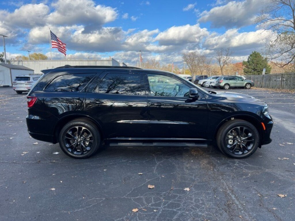 Check out this color combo! Certified. We are Michigans #1 Certified Pre-Owned Dealer, 7-year/100,000-mile warranty!, Durango R/T Premium Blacktop Package, 4D Sport Utility, HEMI 5.7L V8 Multi Displacement VVT, 8-Speed Automatic, AWD, DB Black Clearcoat, Red/Black/Ebony w/Leather Trimmed Bucket Seats, Wiring Harness 7 & 4 Pin, 19 harman/kardon Amplified Speakers w/Subwoofer, 2nd Row Fold/Tumble Captain Chairs, 2nd Row Mini Console w/Cupholders, 2nd Row Seat Mounted Inboard Armrests, 3rd Row Floor Mat & Mini Console, 6-Passenger Seating, 825 Watt Amplifier, Adaptive Cruise Control w/Stop, Advanced Brake Assist, Air Conditioning, Apple CarPlay/Android Auto, Auto High-beam Headlights, Auto-Dimming Exterior Driver Mirror, Auto-dimming Rear-View mirror, Auto-leveling suspension, Automatic temperature control, Auxiliary 115V Power Outlet, Black Roof Rails, Blacktop Package, Blind Spot w/Trailer Detection, Brake assist, Bright Cargo Area Scuff Pads, Bumpers: body-color, Class IV Receiver Hitch, Cloth Bucket Seats w/Shift Insert, Compass, Cruise control, Delay-off headlights, Driver door bin, Driver vanity mirror, Dual Remote USB Port - Charge Only, Electronic Stability Control, Exterior Mirrors w/Heating Element, Exterior Mirrors w/Memory, Exterior Mirrors w/Supplemental Signals, Floor Console w/Leather Armrest, Forged Carbon Fiber Interior Accents, Four wheel independent suspension, Front Bucket Seats, Front dual zone A/C, Front reading lights, Full Speed Forward Collision Warning Plus, Fully automatic headlights, Garage door transmitter, Gloss Black Badges, Gloss Black Exterior Mirrors, Heated door mirrors, Heated front seats, Heated Second Row Seats, Heated steering wheel, Illuminated entry, Integrated Roof Rail Crossbars, Lane Departure Warning Plus, Leather steering wheel, Leather Trimmed Bucket Seats, Leather Wrapped Door Panels, LED Auxiliary Low Beam & Turn Signal, Mopar Black Tubular Side Steps, Navigation system: TomTom, Outside temperature display, Overhead console, Panic alarm, ParkView Rear Back-Up Camera, Passenger vanity mirror, Power 6x9 Multi-Function Foldaway Mirrors, Power 8-Way Driver Memory 8-Way Passenger Seats, Power door mirrors, Power driver seat, Power Liftgate, Power Sunroof, Power Tilt & Telescopic Steering Column, Power windows, Premium Instrument Panel, Quick Order Package 22U R/T Premium, Radio: Uconnect 5 Nav w/10.1" Display, Radio/Driver Seat/Mirrors Memory, Rain sensing wipers, Rear air conditioning, Rear Load Leveling Suspension, Rear reading lights, Rear seat center armrest, Rear window defroster, Rear window wiper, Red Accent Stitching, Satin Black Dodge Tail Lamp Badge, Security system, Speed-sensing steering, Speed-Sensitive Wipers, Split folding rear seat, Spoiler, Sport steering wheel, Suede Headliner, Telescoping steering wheel, Tilt steering wheel, Traction control, Trailer Brake Control, Trip computer, Variably intermittent wipers, Ventilated Front Seats, Voltmeter. CARFAX One-Owner. Clean CARFAX.