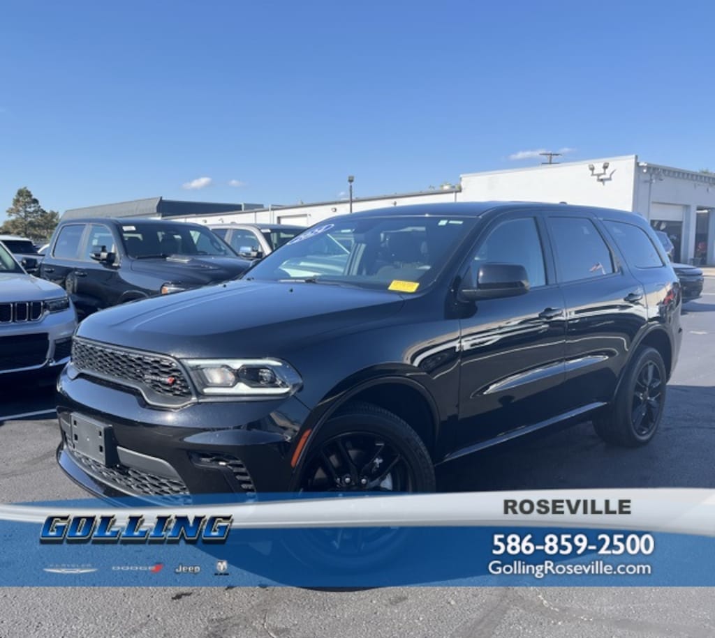 Certified. Priced below KBB Fair Purchase Price! Clean CARFAX. Golling Chrysler Dodge Jeep Ram of Roseville is very proud to offer this 2024 Dodge Durango GT in DB Black Crystal Clearcoat with Black Cloth. This Durango is very well equipped with ** DEALER MAINTAINED**, **LOCAL TRADE**, **ACCIDENT FREE CARFAX**, **ONE OWNER**, **LOW MILES**, and **CERTIFIED PRE-OWNED**Quick Order Package 2BD GT.