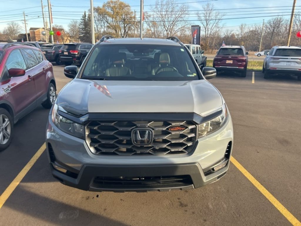 Certified. 3 month 3,000 mile Powertrain Warranty $0 deductible, 3 month / 3000 mile bumper to bumper warranty with no deductible, Passport TrailSport, 4D Sport Utility, 3.5L V6 24V SOHC i-VTEC, 9-Speed Automatic, AWD, Sonic Gray Pearl, Black w/Leather-Trimmed Seats w/Orange Stitching, 4.334 Axle Ratio, A/V remote: CabinControl, Air Conditioning, Alloy wheels, Apple CarPlay/Android Auto, Auto High-beam Headlights, Auto-dimming Rear-View mirror, Automatic temperature control, Blind Spot Information (BSI) System warning, Brake assist, Bumpers: body-color, Compass, Cruise control, Delay-off headlights, Driver door bin, Driver vanity mirror, Driver's Seat Mounted Armrest, Electronic Stability Control, Exterior Parking Camera Rear, Forward collision: Collision Mitigation Braking System (CMBS) + FCW mitigation, Four wheel independent suspension, Front Bucket Seats, Front Center Armrest, Front dual zone A/C, Front fog lights, Front reading lights, Fully automatic headlights, Garage door transmitter: HomeLink, Heated door mirrors, Heated Front Bucket Seats, Heated front seats, Illuminated entry, Lane departure: Lane Keeping Assist System (LKAS) active, Leather-Trimmed Seats w/Orange Stitching, Memory seat, Outside temperature display, Panic alarm, Passenger door bin, Passenger seat mounted armrest, Passenger vanity mirror, Power door mirrors, Power driver seat, Power Liftgate, Power moonroof, Power passenger seat, Power windows, Radio: 215-Watt Audio System w/7 Speakers, Rear air conditioning, Rear window defroster, Rear window wiper, Remote keyless entry, Roof rack: rails only, Security system, Speed-sensing steering, Split folding rear seat, Spoiler, Steering wheel mounted audio controls, Tachometer, Telescoping steering wheel, Traction control, Turn signal indicator mirrors, Variably intermittent wipers. CARFAX One-Owner. Clean CARFAX.