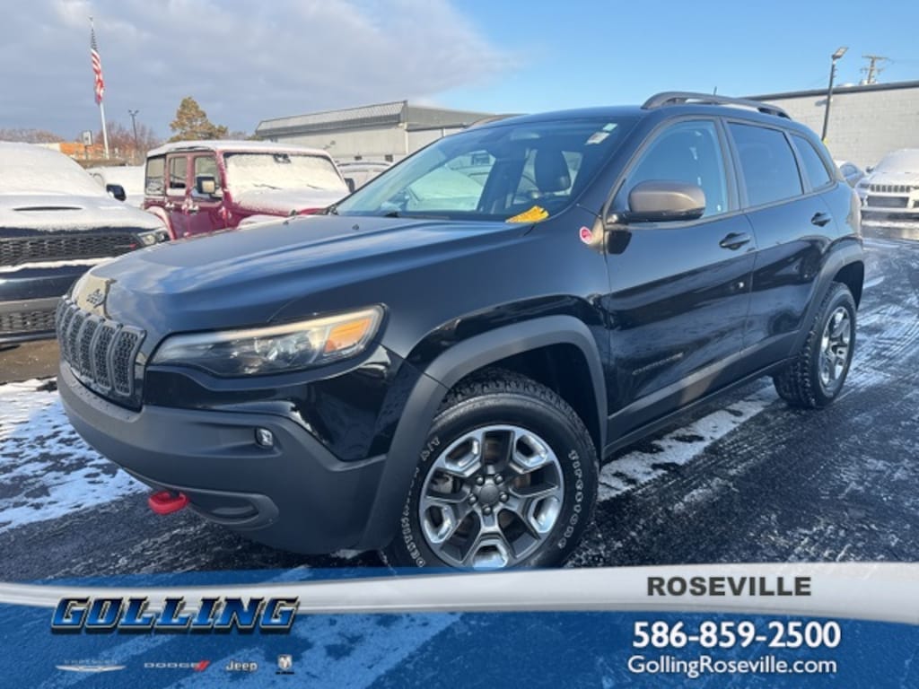 Golling Chrysler Dodge Jeep Ram of Roseville is pleased to offer this 2019 Jeep Cherokee Trailhawk in Diamond Black Crystal Pearlcoat with Black Cloth. This Cherokee is very well equipped with ** DEALER MAINTAINED**, **LOCAL TRADE**, and **CERTIFIED PRE-OWNED**Cold Weather Group (Engine Block Heater, Heated Front Seats, Heated Steering Wheel, and Windshield Wiper De-Icer) and Quick Order Package 27E Trailhawk.