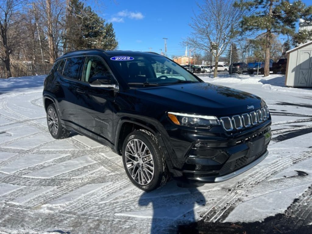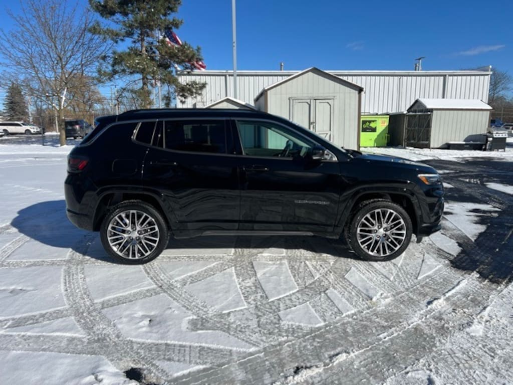Certified. We are Michigans #1 Certified Pre-Owned Dealer, 3 month / 3000 mile bumper to bumper warranty with no deductible, 7-year/100,000-mile warranty!, Accident Free Carfax History Report, Carfax One Owner!!, Local Trade**, Compass Limited, 4D Sport Utility, 2.4L I4, 9-Speed 948TE Automatic, 4WD, Diamond Black Crystal Pearlcoat, Black Leather, 10.1" Touchscreen Display, 2nd Row Heated Seats, 2nd Row USB Type A/C Charge Only, 4G LTE Wi-Fi Hot Spot, Air Conditioning, Alexa Built-In, Auto High-beam Headlights, Auto-dimming Rear-View mirror, Automatic temperature control, Auxiliary 115V Power Outlet, Brake assist, Bumpers: body-color, Cluster 10.25" TFT Color Display, Compass, Connected Travel & Traffic Services, Cruise control, Delay-off headlights, Disassociated Touchscreen Display, Driver Seat Memory, Electronic Stability Control, Elite Group, Foot Activated Open 'N Go Liftgate, For Details, Visit DriveUconnect.com, For More Info, Call 800-643-2112, Front Bucket Seats, Front Center Armrest w/Storage, Front dual zone A/C, Front fog lights, Front reading lights, Fully automatic headlights, Global Telematics Box Module (TBM), Gloss Black Door Cladding, Gloss Black Exterior Mirrors, Gloss Black Exterior Sill, Gloss Black Fascias, Gloss Black Wheel Flares, GPS Navigation, HD Radio, Heated door mirrors, Heated front seats, Heated steering wheel, Illuminated entry, Integrated Voice Command w/Bluetooth, Leather Shift Knob, Leather Trimmed Bucket Seats, LED Low/Highbeam Projector Headlamps, No Satellite Coverage HI/AK/PR/VI/GU, Outside temperature display, Overhead console, Panic alarm, ParkView Rear Back-Up Camera, Passenger vanity mirror, Power 2-Way Passenger Lumbar Adjust, Power 8-Way Adjust Front Passenger Seat, Power door mirrors, Power driver seat, Power Liftgate, Power windows, Premium Leather Trimmed Bucket Seats, Premium LED Fog Lamps, Premium Taillamps, Quick Order Package 2GG, Radio: Uconnect 5 Nav w/10.1" Display, Rear seat center armrest, Rear window defroster, Remote keyless entry, Reversible Carpet/Vinyl Cargo Mat, Roof rack: rails only, Security system, SiriusXM Guardian - Included Trial (B), SiriusXM Radio Service, SiriusXM Satellite Radio, SiriusXM w/360L, Split folding rear seat, Spoiler, Steering wheel mounted audio controls, Turn signal indicator mirrors, Ventilated Front Seats, Wheels: 19" x 7.5" Painted Diamond Cut Aluminum. CARFAX One-Owner. Clean CARFAX.