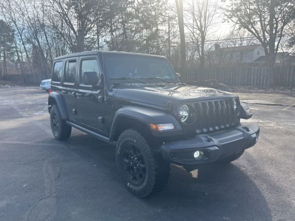 Certified. We are Michigan's #1 Certified Pre-Owned Dealer!, 7-year/100,000-mile warranty!, Accident Free Carfax History Report, Wrangler Unlimited Willys, 4D Sport Utility, 3.6L V6 24V VVT, 8-Speed Automatic, 4WD, Black Clearcoat, Black Cloth, Wiring Harness 7 & 4 Pin, 1-Year SiriusXM Guardian Trial, 2-Door Passive Entry, Front Door Locks, 220 Amp Alternator, 240 Amp Alternator, 4-Wheel Drive Swing Gate Decal, 4G LTE Wi-Fi Hot Spot, 5-Year SiriusXM Traffic Service, 5-Year SiriusXM Travel Link Service, 700 Amp Maintenance Free Battery, 8.4" Radio & Premium Audio Group, 8.4" Touchscreen Display, 97 MPH Vehicle Max Speed Calibration, Air Conditioning, Air Conditioning w/Auto Temperature Control, Air Filtering, Alpine Premium Audio System, Anti-Spin Differential Rear Axle, Apple CarPlay/Android Auto, Auto-Dimming Rear-View Mirror, Automatic Headlamps, Aux Battery, Auxiliary Switches, Black 3-Piece Hard Top, Black Grille, Black Trail Rated Badge, Brake assist, Class II Receiver Hitch, Cloth Low-Back Bucket Seats, Cluster 7.0" TFT Color Display, Convenience Group, Cruise control, Deep Tint Sunscreen Windows, Delay-off headlights, Driver door bin, Driver vanity mirror, Electronic Stability Control, Emergency/Assistance Call, Engine Oil Cooler, Freedom Panel Storage Bag, Front 1-Touch Down Power Windows, Front Bucket Seats, Front Center Armrest w/Storage, Front fog lights, Front LED Fog Lamps, Front reading lights, GPS Navigation, HD Radio, Leather Wrapped Steering Wheel, LED Headlamp & Fog Lamp Group, LED Premium Reflector Headlamps, Matte Black Jeep Badge, Mold In Color Bumper w/Gloss Black, MOPAR All-Weather Floor Mats, No Soft Top, Normal Duty Suspension, Off-Road Info Pages, Outside temperature display, ParkView Rear Back-Up Camera, Passenger door bin, Passenger vanity mirror, Power Heated Mirrors, Power steering, Quick Order Package 24W Willys, Radio data system, Radio: Uconnect 4 w/7" Display, Radio: Uconnect 4C Nav w/8.4" Display, Rear reading lights, Rear Window Defroster, Rear Window Wiper/Washer, Remote Keyless Entry, Security Alarm, SiriusXM Radio Service, SiriusXM Satellite Radio, SiriusXM Traffic Plus, SiriusXM Travel Link, Speed Sensitive Power Locks, Split folding rear seat, Steering wheel mounted audio controls, Stop-Start Dual Battery System, Sun Visors w/Illuminated Vanity Mirrors, Tachometer, Technology Group, Tilt steering wheel, Traction control, Trailer Tow & HD Electrical Group, Trip computer, Universal Garage Door Opener, Variably intermittent wipers, Wheels: 17" x 7.5" Black Steel Styled, Wheels: 17" x 7.5" Moab Black Aluminum, Willys, Willys Hood Decal. Clean CARFAX.