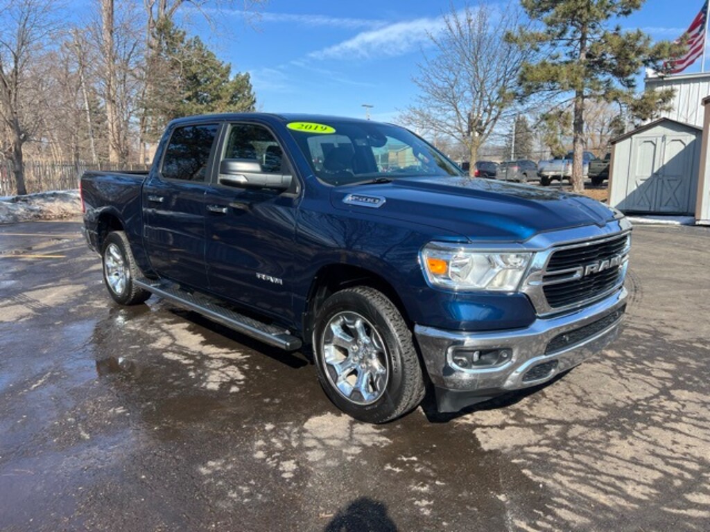 Certified. We are Michigan's #1 Certified Pre-Owned Dealer!, 3 month 3,000 mile Powertrain Warranty $0 deductible, 3 month / 3000 mile bumper to bumper warranty with no deductible, 1500 Big Horn/Lone Star, 4D Crew Cab, 3.6L V6 24V VVT, 8-Speed Automatic, 4WD, Patriot Blue Pearlcoat, Diesel Gray/Black w/Cloth Bench Seat or Deluxe Cloth Bucket Seats, Big Horn/Lone Star Package 23Z, 115V Auxiliary Rear Power Outlet, 2 USB Full Function/Charge Only Media Hub, 3 Rear Seat Head Restraints, 4 Adjustable Cargo Tie-Down Hooks, 4 Way Front Headrests, 4-Wheel Disc Brakes, 400W Inverter, 48V Belt Starter Generator, 6 Speakers, 8.4" Touchscreen Display, ABS brakes, Air Conditioning, Air Conditioning ATC w/Dual Zone Control, Alloy wheels, AM/FM radio, Auto-Dimming Rear-View Mirror, Auxiliary 115V Power Outlet, Bed Utility Group, Big Horn IP Badge, Big Horn Level 2 Equipment Group, Brake assist, Bumpers: chrome, Class IV Receiver Hitch, Cloth Bench Seat, Cluster 7.0" TFT Color Display, Cruise control, Dampened Tailgate, Delay-off headlights, Dual front impact airbags, Electronic Stability Control, Foam Bottle Insert (Door Trim Panel), Front fog lights, Front wheel independent suspension, Fully automatic headlights, Glove Box Lamp, GPS Antenna Input, Heated door mirrors, Heated Front Seats, Heated Steering Wheel, Integrated Center Stack Radio, Low tire pressure warning, Occupant sensing airbag, Overhead airbag, Panic alarm, ParkSense Front/Rear Park Assist w/Stop, ParkView Rear Back-Up Camera, Pick-Up Box Lighting, Power 4-Way Driver Lumbar Adjust, Power 8-Way Driver Seat, Power Adjustable Pedals, Power door mirrors, Power Heated Fold Away Mirrors, Power steering, Power windows, Radio data system, Radio: Uconnect 3 w/5" Display, Radio: Uconnect 4 w/8.4" Display, Rear 60/40 Folding Seat, Rear anti-roll bar, Rear Dome w/On/Off Switch Lamp, Rear Power Sliding Window, Rear step bumper, Rear Wheelhouse Liners, Rear Window Defroster, Remote keyless entry, Remote Start System, Security Alarm, Single Disc Remote CD Player, SiriusXM Satellite Radio, Split folding rear seat, Spray In Bedliner, Steering Wheel Mounted Audio Controls, Sun Visors w/Illuminated Vanity Mirrors, Tachometer, Telescoping steering wheel, Tilt steering wheel, Traction control, Trip computer, Universal Garage Door Opener, Variably intermittent wipers, Voltmeter, Wheel to Wheel Side Steps.