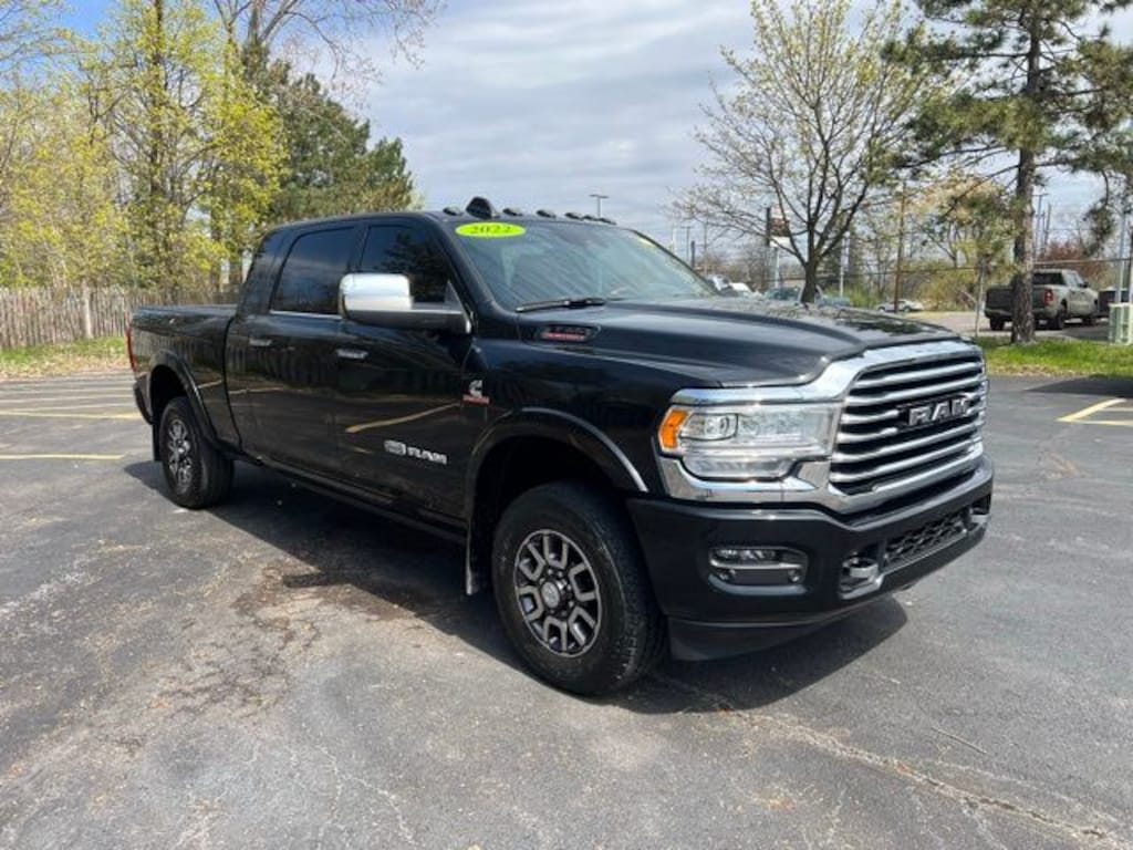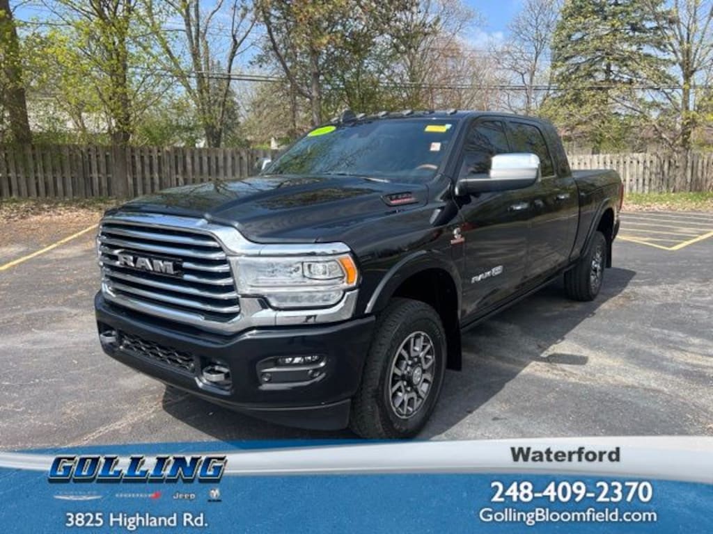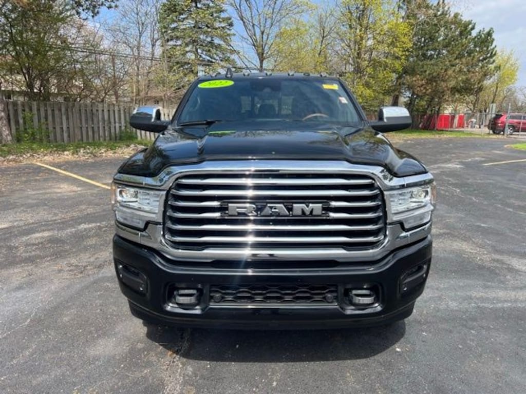 Certified. New Arrival - Waiting on title, We are Michigan's #1 Certified Pre-Owned Dealer!, This vehicle is not available for final sale until the title is in the possession of the dealer, 7-year/100,000-mile warranty!, Accident Free Carfax History Report, Carfax One Owner!!, 3500 Limited Longhorn, 4D Mega Cab, Cummins 6.7L I6 Turbodiesel, 6-Speed Automatic, 4WD, Diamond Black Crystal Pearlcoat, Black Leather, 10 Speakers, 115V Auxiliary Rear Power Outlet, 12" Touchscreen Display, 17 Speaker harman kardon Premium Sound, 2 Way Rear Headrest Seat, 220 Amp Alternator, 4 Adjustable Cargo Tie-Down Hooks, 4 Way Front Headrests, 4G LTE Wi-Fi Hot Spot, 8.4" Touchscreen Display, Adaptive Cruise Control w/Stop, Adaptive Steering System, Adjustable pedals, Air Conditioning, All R1 High Radios, All Radio Equipped Vehicles, Alloy wheels, Apple CarPlay, Apple CarPlay/Android Auto, Auto High-beam Headlights, Auto-dimming Rear-View mirror, Automatic temperature control, Blind Spot & Cross Path Detection, Blind Spot & Cross Path Detection (DISC), Body Color Bumper Group, Brake assist, Bucket Seats, Chrome Tow Hooks, Clearance Lamps, Compass, Connected Travel & Traffic Services, Connectivity - US/Canada, CTR Stop Lamp w/Cargo View Camera, Digital Rearview Mirror, Disassociated Touchscreen Display, Driver door bin, Driver vanity mirror, Electronic Stability Control, Electronically Controlled Throttle, For Details Visit DriveUconnect.com, For More Info, Call 800-643-2112, Front Bucket Seats, Front Center Armrest w/Storage, Front dual zone A/C, Front License Plate Bracket, Front reading lights, Front Seat Back Map Pockets, Full Length Premium Upgraded Floor Console, Full Speed Forward Collision Warning Plus, Garage door transmitter, Genuine wood console insert, Genuine wood dashboard insert, Genuine wood door panel insert, Global Telematics Box Module (TBM), Google Android Auto, GPS Antenna Input, GPS Navigation, HD Radio, Heated door mirrors, Heated Front Seats, Heated front seats, Heated rear seats, Heated Second Row Seats, High Back Seats, I/P Mounted Auxiliary Switches, Integrated Center Stack Radio, Integrated Voice Command w/Bluetooth, Lane Keep Assist, Leather steering wheel, Longhorn Level 1 Equipment Group, Manufacturer's Statement of Origin, Memory seat, Navigation System, Off-Road Information Pages, Outside temperature display, Overhead console, Painted Front Bumper, Painted Rear Bumper, Panic alarm, Passenger door bin, Passenger vanity mirror, Pedal memory, Power 8-Way Adjustable Passenger Seat, Power Adjust 8-Way Driver Seat, Power Deployable Running Boards, Power door mirrors, Power driver seat, Power passenger seat, Power steering, Power windows, Premium Filigree Leather Seats, Protection Group, Quick Order Package 21K Longhorn, Radio data system, Radio: Uconnect 5 Nav w/12.0" Display, Radio: Uconnect 5 Nav w/8.4" Display, RamBox Cargo Management System (DISC), RamBox Utility Group (DISC), Ramcharger Wireless Charging Pad, Rear 60/40 Folding Seat, Rear Backup Alarm, Rear reading lights, Rear seat center armrest, Rear step bumper, Rear window defroster, Remote keyless entry, Safety Group, Security system, Selectable Tire Fill Alert, SiriusXM Radio Service, SiriusXM Satellite Radio, SiriusXM w/360L, Snow Chief Group, Split folding rear seat, Steering wheel mounted audio controls, Surround View Camera System, Tachometer, Tilt steering wheel, Tip Start, Towing Technology Group, Traction control, Trailer Reverse Guidance, Trailer Surround View Camera System (DISC), Trip computer, Truck Bed Cargo Divider, Turn signal indicator mirrors, Vendor Painted Cargo Box, Vendor Painted Cargo Box Tracking, Ventilated Front Seats, Ventilated front seats, Voltmeter. CARFAX One-Owner. Clean CARFAX.