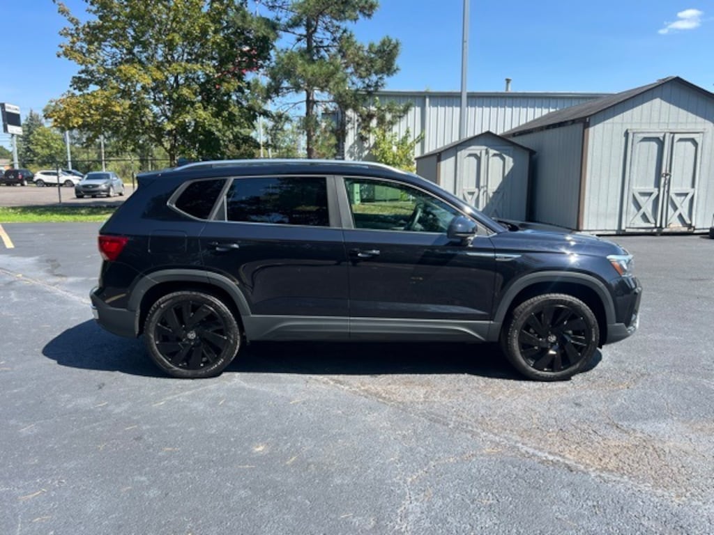 Certified. We are Michigans #1 Certified Pre-Owned Dealer, 3 month 3,000 mile Powertrain Warranty $0 deductible, 3 month / 3000 mile bumper to bumper warranty with no deductible, Taos 1.5T SE, 4D Sport Utility, 1.5L I4 Turbocharged DOHC 16V LEV3-SULEV30 158hp, 7-Speed DSG Automatic with Tiptronic, AWD, Deep Black Pearl, Black w/CloudTex & Cloth Seating Surfaces, 6 Speakers, Air Conditioning, Alloy wheels, AM/FM radio: SiriusXM with 360L, Bumpers: body-color, CloudTex & Cloth Seating Surfaces, Compass, Driver door bin, Four wheel independent suspension, Front Bucket Seats, Front Center Armrest, Front reading lights, Front Strut Rear Multi-Link Suspension, Heated door mirrors, Heated Front Comfort Seats, Heated front seats, Heated steering wheel, Illuminated entry, Leather Shift Knob, Outside temperature display, Overhead console, Panoramic Sunroof Package, Passenger door bin, Passenger vanity mirror, Power door mirrors, Power driver seat, Power windows, Radio data system, Radio: MIB3 Composition Media AM/FM/HD, Rear seat center armrest, Rear window defroster, Remote keyless entry, Speed-sensing steering, Split folding rear seat, Spoiler, Steering wheel mounted audio controls, Tachometer, Telescoping steering wheel, Traction control, Trip computer, VW Care. CARFAX One-Owner. Clean CARFAX.