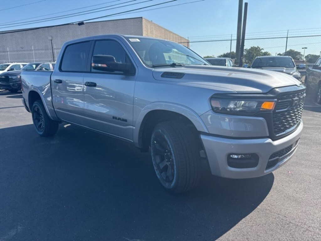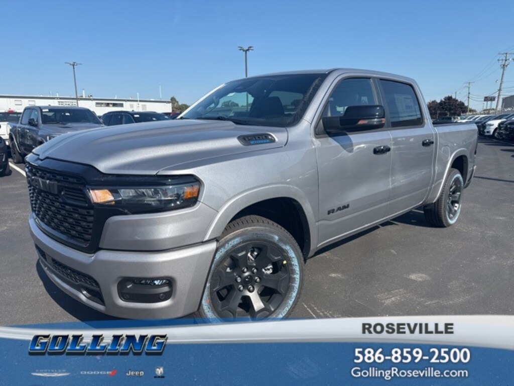 Clean CARFAX. Golling Chrysler Dodge Jeep Ram of Roseville is proud to offer this 2025 Ram 1500 Big Horn/Lone Star in Billet Silver Metallic Clearcoat with Black Cloth. This 1500 is very well equipped with Big Horn Level 2 Equipment Group (115V Auxiliary Power Outlet, 115V Auxiliary Rear Power Outlet, 12" Touchscreen Display, 2nd Row In Floor Storage Bins, 400W Inverter, 4G LTE Wi-Fi Hot Spot, 9 Amplified Speakers w/Subwoofer, Air Conditioning ATC w/Dual Zone Control, Apple CarPlay, Auto Power-Folding Mirrors, Auto-Dimming Exterior Driver Mirror, Auto-Dimming Rear-View Mirror, Black Exterior Mirrors, Black Premium Power Mirrors, Cluster 7.0" TFT Color Display, Configurable Drive Mode, Connected Travel & Traffic Services, Connectivity - US/Canada, Convex Wide-Angle Exterior Mirror Insert, Exterior Mirrors Courtesy Lamps, Exterior Mirrors w/Heating Element, Exterior Mirrors w/Supplemental Signals, Glove Box Lamp, Google Android Auto, GPS Antenna Input, GPS Navigation, HD Radio, Heated Front Seats, Heated Steering Wheel, Integrated Voice Command w/Bluetooth, Leather Wrapped Steering Wheel, LED Dome Lamp w/On/Off Switch, LED Footwell Lighting, Media Hub w/2 Charge Only USBs, Overhead LED Lamps, Power 2-Way Driver Lumbar Adjust, Power Adjust 8-Way Driver Seat, Power Adjustable Pedals, Premium Overhead Console, Radio: Uconnect 5 Nav w/12.0" Display, Rear Power Sliding Window, Rear Window Defroster, Remote Tailgate Release, Security Alarm, SiriusXM w/360L, Steering Wheel Mounted Audio Controls, Sun Visors w/Illuminated Vanity Mirrors, Universal Garage Door Opener, and USB Host Flip), Night Edition (3 Rear Seat Head Restraints, 4 Way Front Headrests, Accent Color Door Handles, Accent Color Premium Power Mirrors, Accent Color Tailgate Handle, Anti-Spin Differential Rear Axle, Black Exterior Truck Badging, Black Headlamp Bezels, Black Interior Accents, Black Painted Exterior Mirrors Caps, Black Tail Lamp Bezels, Body Color Front Bumper, Body Color Rear Bumper w/Step Pads, Bucket Seats, Deluxe Cloth Bucket Seats, Front Seat Back Map Pockets, Full Length Floor Console, Grille Black Surround Black Mesh, Manual Adjust 4-Way Front Passenger Seat, RAM Grille Badge - Black, Rear 60/40 Folding Seat, Rear Center Armrest, and Wheels: 20" x 9.0" Aluminum Painted Clad), and Quick Order Package 23Z Big Horn (Big Horn Badge)