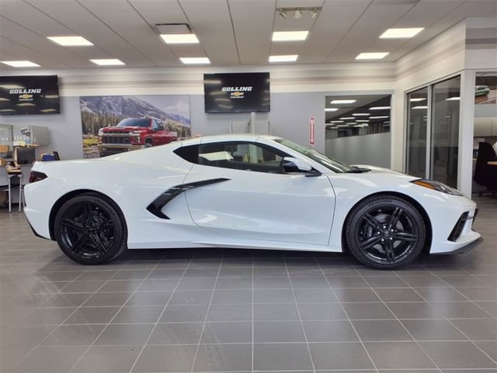 Designed to turn heads, the Corvette Stingray 2LT's striking White exterior is complemented by a host of premium styling cues, including a low-profile rear spoiler, front splitter, and power-adjustable heated mirrors. Step inside the cabin, and you'll be greeted by a luxurious Mulan Leather-appointed interior, complete with heated and ventilated seats, a heated steering wheel, and a host of advanced technology features.