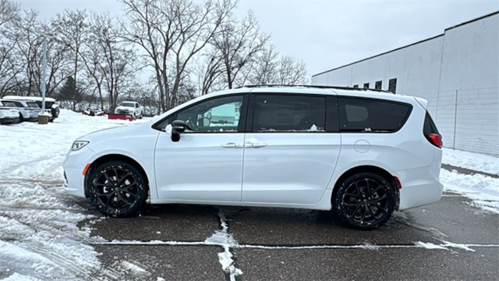 Check out the great features on this beautiful 2026 Chrysler Pacifica Quick Order Package 27L, S Appearance Package (Anodized Ink Badging, Black Day Light Opening Moldings, Black Stow 'N Place Roof Rack, Piano Black Interior Accents, Premium Rear Fascia Black, S Badge, and Wheels: 20" x 7.5" S-Model Aluminum Design 1), Pacifica Select, 10.1" Touchscreen Display, 3rd row seats: split-bench, 4-Wheel Disc Brakes, 4G LTE Wi-Fi Hot Spot, ABS brakes, Apple CarPlay/Android Auto, Auto-dimming Rear-View mirror, Brake assist, Electronic Stability Control, Heated door mirrors, Heated front seats, Heated steering wheel, ParkView Rear Back-Up Camera, Power door mirrors, Power Liftgate, Reclining 3rd row seat, Turn signal indicator mirrors, 17" Aluminum Wheels, 3.25 Axle Ratio, 6 Speakers, Air Conditioning, Alloy wheels, AM/FM radio: SiriusXM, Apple CarPlay, Automatic temperature control, Bumpers: body-color, Caprice Leatherette Bucket Seats, Compass, Connectivity - US/Canada, Cruise control, Delay-off headlights, Disassociated Touchscreen Display, Driver door bin, Driver vanity mirror, Driver's Seat Mounted Armrest, Dual front impact airbags, Dual front side impact airbags, Emergency communication system: Chrysler Connect, For Details, Visit DriveUconnect.com, Four wheel independent suspension, Front anti-roll bar, Front Bucket Seats, Front dual zone A/C, Front fog lights, Front reading lights, Fully automatic headlights, Garage door transmitter, Google Android Auto, GPS Antenna Input, Illuminated entry, Integrated Active Noise Cancellation, Integrated Center Stack Radio, Knee airbag, Low tire pressure warning, Memory seat, Occupant sensing airbag, Outside temperature display, Overhead airbag, Overhead console, Panic alarm, Passenger door bin, Passenger seat mounted armrest, Passenger vanity mirror, Power driver seat, Power steering, Power windows, Radio data system, Rain sensing wipers, Rear air conditioning, Rear reading lights, Rear window defroster, Rear window wiper, Remote keyless entry, Security system, Split folding rear seat, Spoiler, Steering wheel mounted audio controls, Tachometer, Telescoping steering wheel, Tilt steering wheel, Touring Suspension, Traction control, Trip computer, USB Host Flip, Variably intermittent wipers, and VoltmeteR. Price includes: $2750 - 2026 National Retail Bonus Cash . Exp. 02/02/2026 $750 - 2026 National Bonus Cash . Exp. 02/02/2026