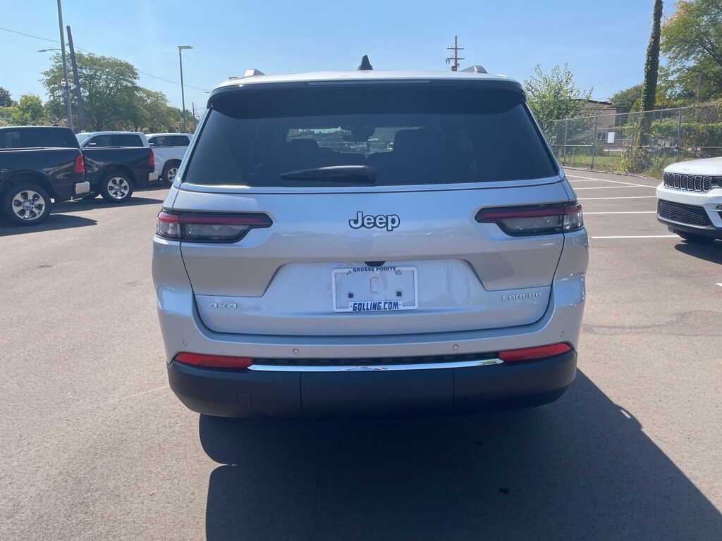 The all new Golling CDJR of Grosse Pointe is very proud to offer this 2025 Jeep Grand Cherokee L Laredo in Silver Zynith with Black Cloth. This Grand Cherokee L is very well equipped with Luxury Tech Group I (115V Auxiliary Power Outlet, 3rd Row Charge-Only USB Ports, Heated Front Seats, Heated Steering Wheel, Power Liftgate, Rain Sensitive Windshield Wipers, Remote Start System, Selectable Tire Fill Alert, and Wireless Charging Pad), Quick Order Package 23D Laredo X (Laredo X and Power Sunroof), Heated door mirrors, Wheels: 18" x 8.0" Fully Painted Aluminum, 3.45 Rear Axle Ratio, 3rd row seats: split-bench, 4-Wheel Disc Brakes, 6 Speakers, ABS brakes, Air Conditioning, Alloy wheels, AM/FM radio: SiriusXM, Anti-whiplash front head restraints, Automatic temperature control, Brake assist, Bumpers: body-color, Cloth Seats, Compass, Delay-off headlights, Driver door bin, Driver vanity mirror, Dual front impact airbags, Dual front side impact airbags, Electronic Stability Control, Emergency communication system, Four wheel independent suspension, Front anti-roll bar, Front Bucket Seats, Front Center Armrest w/Storage, Front dual zone A/C, Front reading lights, Fully automatic headlights, Illuminated entry, Knee airbag, Low tire pressure warning, Manual Fold Seatbacks, Model Year Tracking, Normal Duty Suspension, Occupant sensing airbag, Outside temperature display, Overhead airbag, Overhead console, Panic alarm, ParkView Rear Back-Up Camera, Passenger door bin, Passenger vanity mirror, Power door mirrors, Power driver seat, Power steering, Power windows, Radio data system, Radio: Uconnect 5 w/8.4" Display, Rear air conditioning, Rear anti-roll bar, Rear reading lights, Rear window defroster, Rear window wiper, Reclining 3rd row seat, Remote keyless entry, Security system, Speed control, Speed-Sensitive Wipers, Split folding rear seat, Spoiler, Steering wheel mounted audio controls, Tachometer, Telescoping steering wheel, Tilt steering wheel, Traction control, Trip computer, Variably intermittent wipers, and Voltmeter.