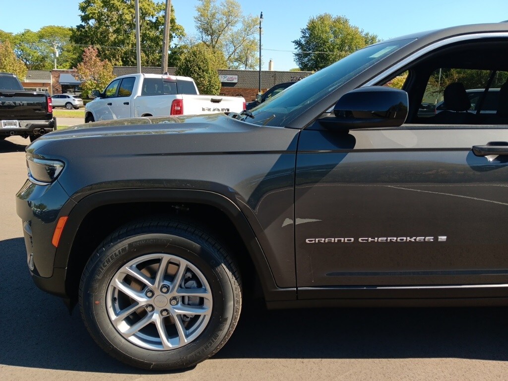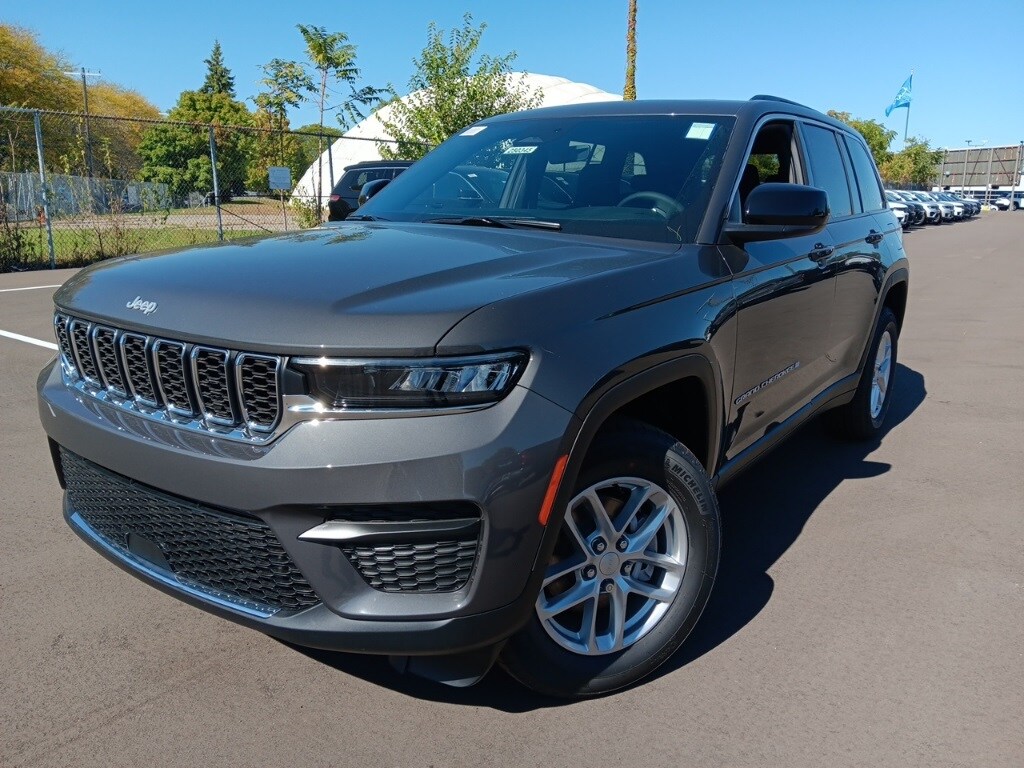 The all new Golling CDJR of Grosse Pointe is pumped up to offer this 2025 Jeep Grand Cherokee Laredo X in Baltic Gray Metallic Clearcoat with Black Cloth. This Grand Cherokee is very well equipped with Luxury Tech Group I (115V Auxiliary Power Outlet, Heated Front Seats, Heated Steering Wheel, Power Liftgate, Rain Sensitive Windshield Wipers, Remote Start System, Satellite Radio, Secondary Active Grille Shutters, Selectable Tire Fill Alert, and Wireless Charging Pad), Quick Order Package 23D Laredo X (Laredo X, Power Sunroof, and Wheels: 18" x 8" Fully Painted Aluminum), Brake assist, Heated door mirrors, ParkView Rear Back-Up Camera, Remote keyless entry, Security system, 4-Wheel Disc Brakes, 6 Speakers, ABS brakes, Air Conditioning, Alloy wheels, AM/FM radio: SiriusXM, Anti-whiplash front head restraints, Automatic temperature control, Bumpers: body-color, Cloth Seats, Compass, Delay-off headlights, Driver door bin, Driver vanity mirror, Dual front impact airbags, Dual front side impact airbags, Electronic Stability Control, Emergency communication system, Four wheel independent suspension, Front anti-roll bar, Front Bucket Seats, Front Center Armrest w/Storage, Front dual zone A/C, Front reading lights, Fully automatic headlights, Illuminated entry, Knee airbag, Low tire pressure warning, Model Year Tracking, Normal Duty Suspension, Occupant sensing airbag, Outside temperature display, Overhead airbag, Overhead console, Panic alarm, Passenger door bin, Passenger vanity mirror, Power door mirrors, Power driver seat, Power steering, Power windows, Radio data system, Radio: Uconnect 5 w/8.4" Display, Rear anti-roll bar, Rear reading lights, Rear window defroster, Rear window wiper, Speed control, Speed-Sensitive Wipers, Split folding rear seat, Spoiler, Steering wheel mounted audio controls, Tachometer, Telescoping steering wheel, Tilt steering wheel, Traction control, Trip computer, Variably intermittent wipers, Voltmeter, and Wheels: 17" x 6.5" Fully Painted Aluminum. 19/26 City/Highway MPG
