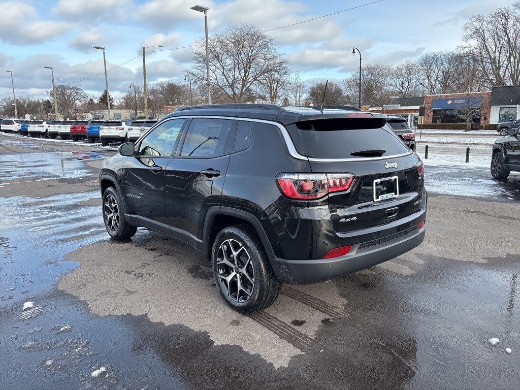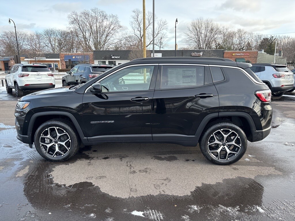 The all new Golling CDJR of Grosse Pointe is proud to offer this 2026 Jeep Compass Limited in Diamond Black Crystal Pearlcoat with Black Artificial Leather. This Compass is very well equipped with Quick Order Package 29G Limited, 10.1" Touchscreen Display, 3.73 Final Drive Ratio, 4-Wheel Disc Brakes, 4G LTE Wi-Fi Hot Spot, 6 Speakers, ABS brakes, Air Conditioning, Alloy wheels, AM/FM radio: SiriusXM, Auto High-beam Headlights, Auto-dimming Rear-View mirror, Automatic temperature control, Brake assist, Bumpers: body-color, Compass, Delay-off headlights, Driver door bin, Driver vanity mirror, Dual front impact airbags, Dual front side impact airbags, Electronic Stability Control, Emergency communication system: SiriusXM Guardian, Four wheel independent suspension, Front anti-roll bar, Front Bucket Seats, Front Center Armrest w/Storage, Front dual zone A/C, Front fog lights, Front reading lights, Fully automatic headlights, Global Telematics Box Module, Heated door mirrors, Heated front seats, Heated steering wheel, Illuminated entry, Knee airbag, Leather Shift Knob, Leather steering wheel, Leatherette Seats, Low tire pressure warning, Occupant sensing airbag, Outside temperature display, Overhead airbag, Overhead console, Panic alarm, ParkView Rear Back-Up Camera, Passenger door bin, Passenger vanity mirror, Power door mirrors, Power driver seat, Power Liftgate, Power steering, Power windows, Premium audio system: UConnect 5, Radio: Uconnect 5 with 10.1" Display, Rain sensing wipers, Rear anti-roll bar, Rear seat center armrest, Rear window defroster, Rear window wiper, Remote keyless entry, Security system, SiriusXM Guardian - Included Trail (B), SiriusXM Radio Service, Speed control, Split folding rear seat, Spoiler, Steering wheel mounted audio controls, Tachometer, Telescoping steering wheel, Tilt steering wheel, Traction control, Trip computer, Turn signal indicator mirrors, Variably intermittent wipers, and Wheels: 18" x 7" Painted Diamond Cut Aluminum. Recent Arrival! 23/31 City/Highway MPG