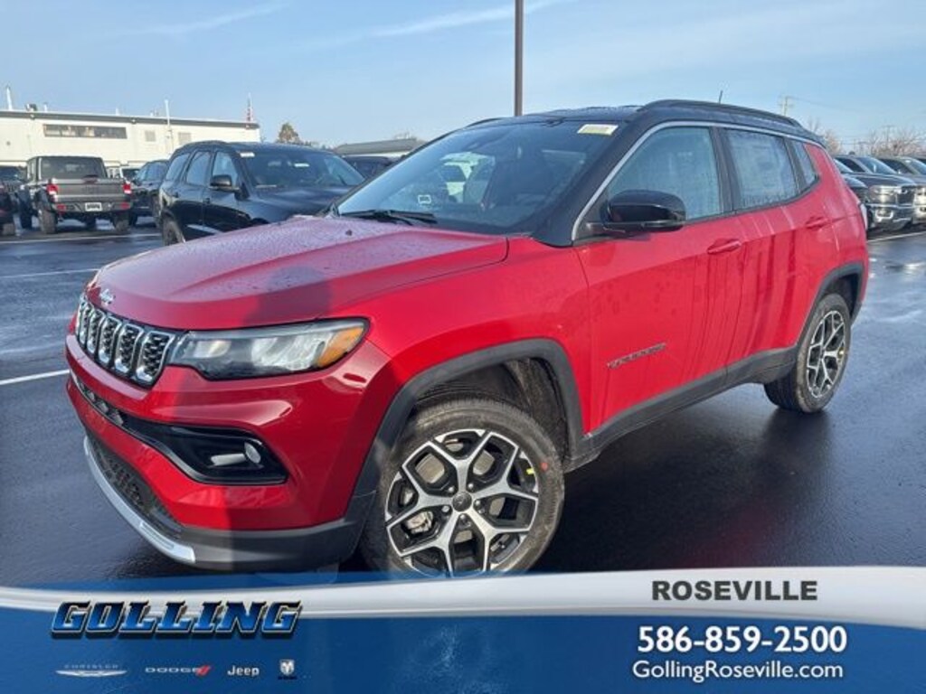 Golling Chrysler Dodge Jeep Ram of Roseville is pumped up to offer this 2026 Jeep Compass Limited in red hot pearlcoat with Black Artificial Leather. This Compass is very well equipped with.