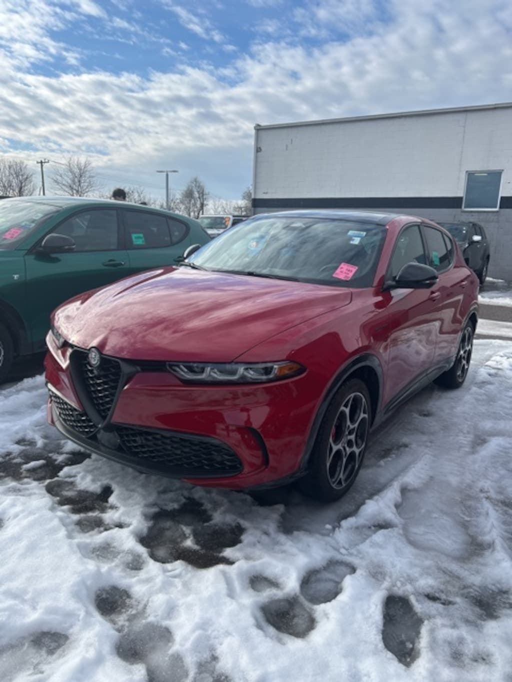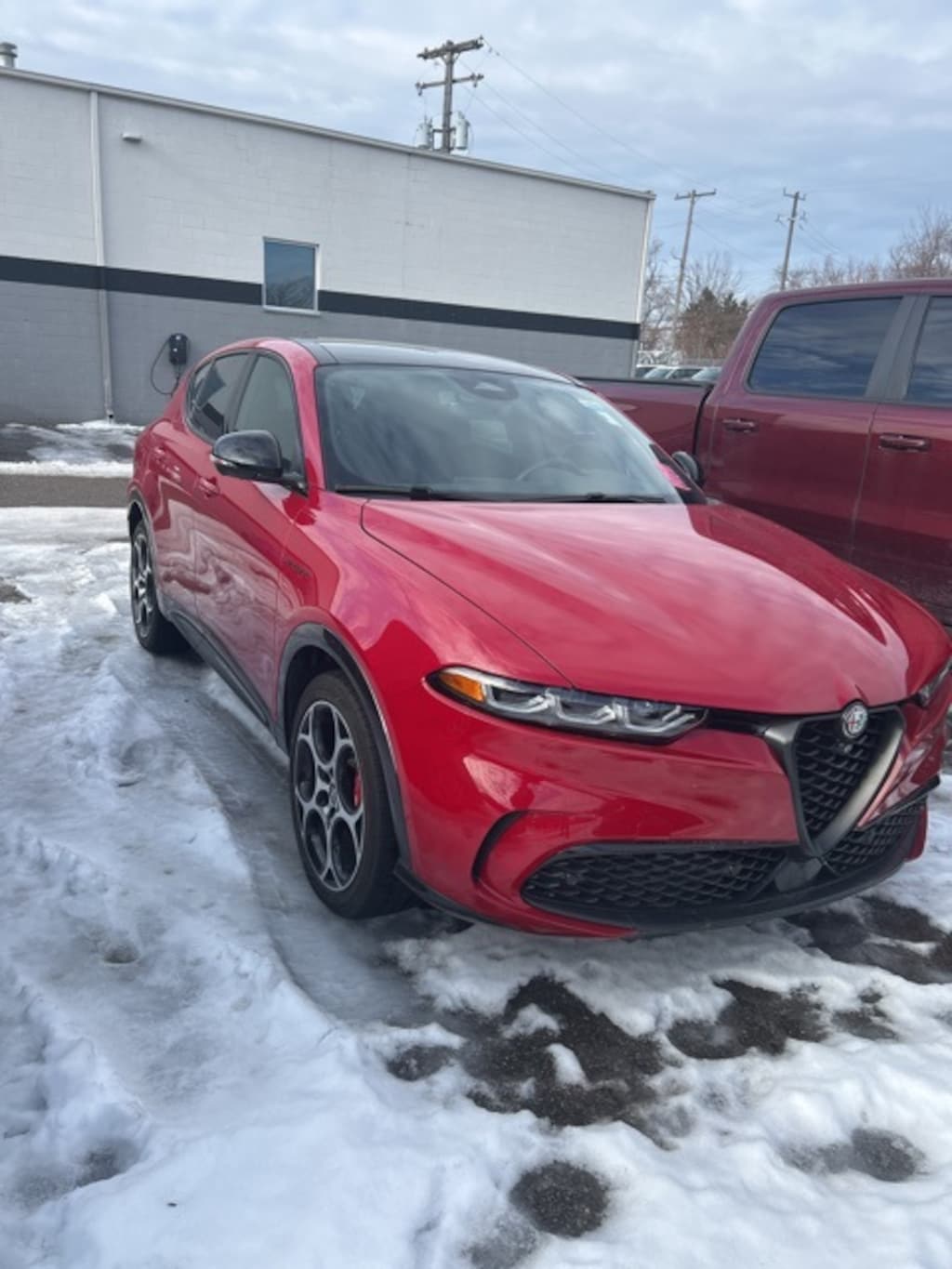 Save huge money! JD Power retail is $39,625! Luxury and economy all in one! 77-MPG equivalent with gas and hybrid technology! Tonale Veloce, 4D Sport Utility, 1.3L I4, 6-Speed Automatic, AWD, Alfa Rosso, Red/Black, Active Assist Package (DISC), Active Driving Assist System, Air Conditioning, Alloy wheels, Apple CarPlay/Android Auto, Auto High-beam Headlights, Auto-Dimming Rear Exterior Mirrors, Auto-dimming Rear-View mirror, Automatic temperature control, Brake assist, Bumpers: body-color, Compass, Cruise control, Delay-off headlights, Driver door bin, Driver vanity mirror, Electronic Stability Control, Front Bucket Seats, Front dual zone A/C, Front fog lights, Front reading lights, Fully automatic headlights, Garage door transmitter, Heated door mirrors, Heated front seats, Heated steering wheel, Illuminated entry, Leather steering wheel, Navigation System, Outside temperature display, Overhead console, Panic alarm, ParkSense Front/Rear/Side Park Assist, ParkView Rear Back-Up Camera, Passenger vanity mirror, Perforated Alcantara Seats, Power door mirrors, Power driver seat, Power Liftgate, Power Moonroof, Power passenger seat, Power windows, Quick Order Package 28E, Rain sensing wipers, Rear seat center armrest, Rear window defroster, Rear window wiper, Remote keyless entry, Security system, Split folding rear seat, Spoiler, Sport steering wheel, Steering wheel mounted audio controls, Surround View Camera System, Tachometer, TBD Axle Ratio, Telescoping steering wheel, Tilt steering wheel, Trip computer, Turn signal indicator mirrors, Variably intermittent wipers. CARFAX One-Owner. Clean CARFAX.