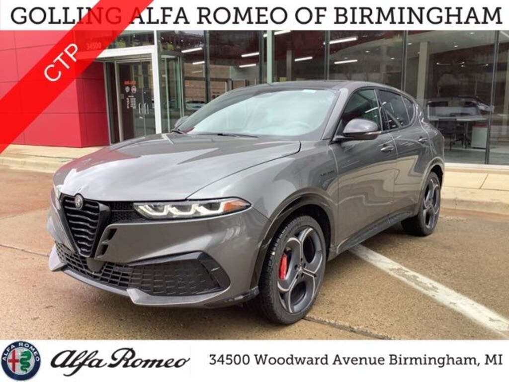Golling Alfa Romeo of Birmingham is proud to offer this 2026 Alfa Romeo Tonale Veloce in Grigio Ascari Metallic with Red Cloth. This Tonale is very well equipped with CTP-Retired Service Loaner-1xxx Miles Ambient Lighting Package, Quick Order Package 23H Veloce (Aluminum Steering Column Mounted Paddle Shifters, Dark Tonale Badge, Dark Veloce Badge, Dual Mode Suspension, Gloss Black Painted Dlo, Hands Free Power Liftgate, Perforated Black Leather Seats with Gray Stitch, Power Liftgate, Red Brembo Calipers W.White Script, Veloce Aluminum Door Sills, and Ventilated Front Seats), ABS brakes, Alloy wheels, Compass, Electronic Stability Control, Emergency communication system, Front dual zone A/C, Heated door mirrors, Heated front seats, Illuminated entry, Low tire pressure warning, Navigation System, ParkView Rear Back-Up Camera, Power Moonroof, Remote keyless entry, Traction control, and Wheels: 20" x 8" Alloy Diamond Cut Miron Matte.