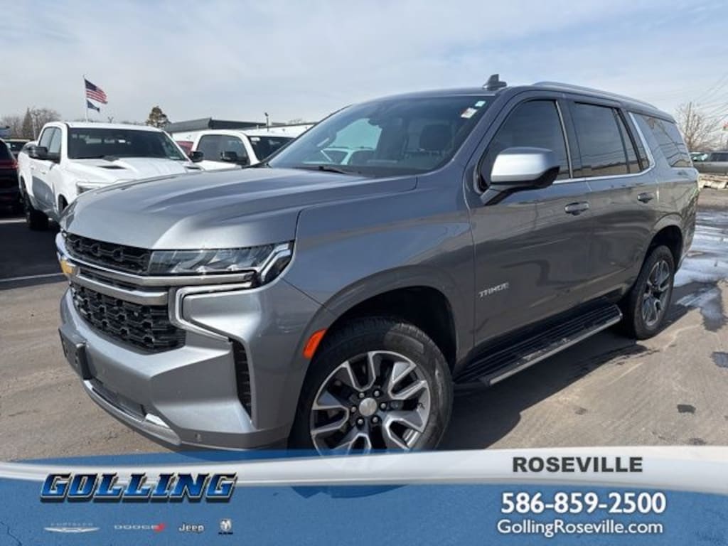 Golling Chrysler Dodge Jeep Ram of Roseville is pumped up to offer this 2021 Chevrolet Tahoe LS in Satin Steel Metallic with Jet Black Cloth. This Tahoe is very well equipped with ** DEALER MAINTAINED**, **LOCAL TRADE**, and **ACCIDENT FREE CARFAX**Driver Alert Package (Front & Rear Park Assist, Lane Change Alert w/Side Blind Zone Alert, Lane Keep Assist w/Lane Departure Warning, and Rear Cross Traffic Alert), License Plate Front Mounting Package, and Preferred Equipment Group 1LS (1st & 2nd Row Color-Keyed Carpeted Floor Mats, 2 USB Data Ports, Color-Keyed Carpeting Floor Covering, Driver & Front Outboard Passenger Airbags, Floor Console w/Storage Area, HD Radio, Infotainment Display, Leather-Wrapped Steering Wheel, LED Daytime Running Lamps, Remote Start, and SiriusXM Radio w/360L)