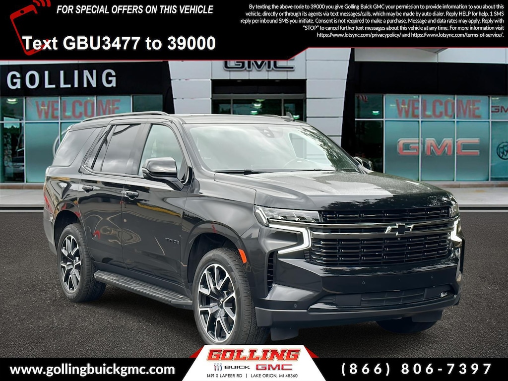 This 2022 Chevrolet Tahoe is a Golling Buick GMC Manager Special! Premium Installed Options include driver alert package, luxury package and preferred equipment group 1sp. Also well Equipped with Four Wheel Drive, Sunroof/Moonroof, Stability Control, Navigation System, WIFI Hotspot, Rear Cross Traffic Alert, Keyless Entry, Apple CarPlay, Android Auto and Heated Seats. The exterior color is Black. The interior color is Jet Black/Victory Red. Experience the Golling Buick/GMC Difference! Call us at 248-429-5178 or visit our website http://www.gollingbg.com