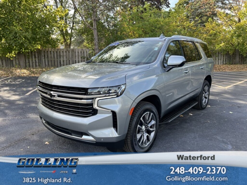 Heated Seats**, Accident Free Carfax History Report, Carfax One Owner!!, JD Power retail is $59,350!, Tahoe LT, 4D Sport Utility, EcoTec3 5.3L V8, 10-Speed Automatic with Overdrive, 4WD, Sterling Gray Metallic, Jet Black w/Leather-Appointed Seat Trim, 10-Way Power Driver & Passenger Seat Adjusters, 1st & 2nd Row Color-Keyed Carpeted Floor Mats, 2nd Row Manual Bucket Seats, 3rd row seats: split-bench, 4-Wheel Disc Brakes, ABS brakes, Air Conditioning, Alloy wheels, Apple CarPlay/Android Auto, Auto High-beam Headlights, Auto-Dimming Inside Rear-View Mirror, Auto-dimming Rear-View mirror, Automatic temperature control, Bose 9-Speaker Stereo Audio System Feature, Brake assist, Bright Front & Rear Door Sill Plates, Bumpers: body-color, Color-Keyed Carpeting Floor Covering, Compass, Cruise control, Delay-off headlights, Driver & Front Outboard Passenger Airbags, Driver door bin, Driver vanity mirror, Dual front impact airbags, Dual front side impact airbags, Dual-Pane Power Panoramic Sunroof, Electronic Stability Control, Emergency communication system: OnStar and Chevrolet connected services capable, Enhanced Driver Information Center, Floor Console w/Storage Area, Four wheel independent suspension, Front & Rear Black Bowtie Emblems (LPO), Front Bucket Seats, Front Center Armrest, Front dual zone A/C, Front High-Back Reclining Bucket Seats, Front reading lights, Fully automatic headlights, Garage door transmitter, Hands-Free Rear Power Programmable Liftgate, Heated door mirrors, Heated Driver & Front Passenger Seats, Illuminated entry, Infotainment Display, LED Daytime Running Lamps, Memory seat, Memory Settings for Driver, Navigation System, Not Equipped w/Wireless Charging, Outside temperature display, Overhead console, Panic alarm, Passenger vanity mirror, Power door mirrors, Power driver seat, Power Liftgate, Power steering, Power windows, Preferred Equipment Group 1LT, Premium Smooth Ride Suspension, Rain sensing wipers, Rear air conditioning, Rear reading lights, Rear seat center armrest, Rear window defroster, Rear window wiper, Remote keyless entry, Remote Start, Roof rack: rails only, Security system, SiriusXM Radio w/360L, Speed-sensing steering, Spoiler, Steering wheel mounted audio controls, Tachometer, Telescoping steering wheel, Tilt steering wheel, Traction control, Trip computer, Universal Home Remote, Variably intermittent wipers, Voltmeter, Wheels: 18" x 8.5" Bright Silver Painted Aluminum, Wheels: 20" x 9" Painted Aluminum, Wireless Charging, Wrapped Steering Wheel. CARFAX One-Owner. Clean CARFAX.