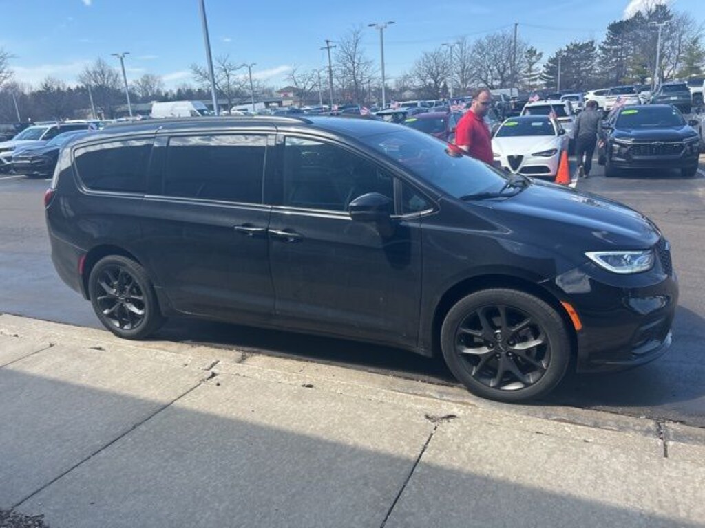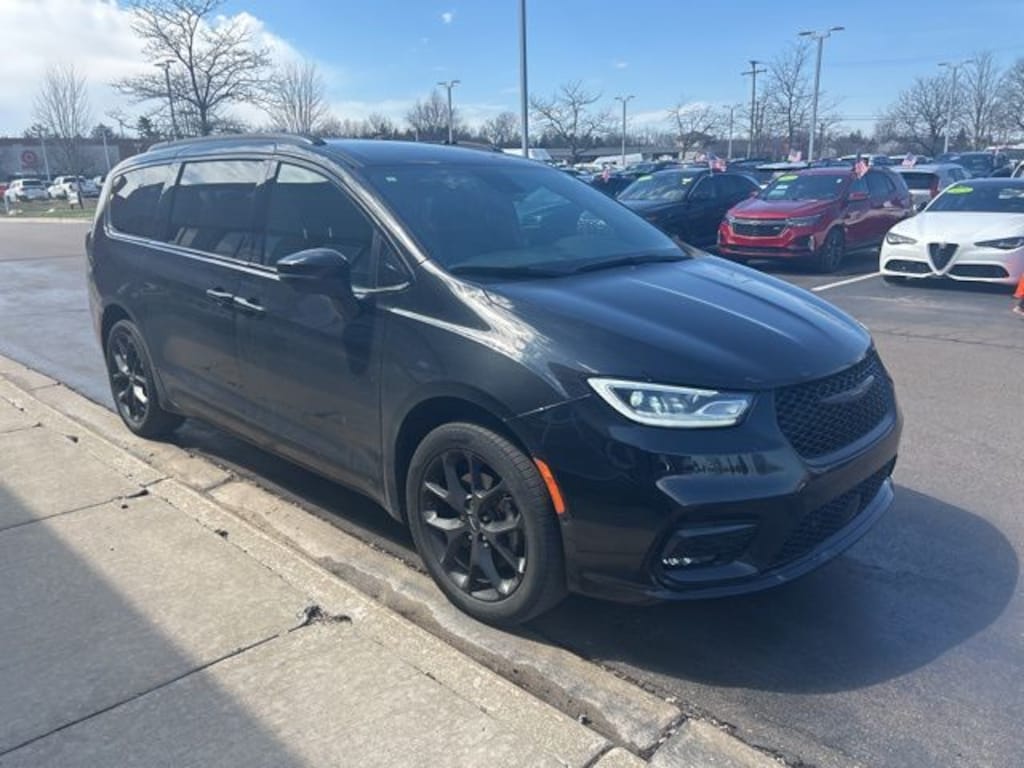 Pacifica Touring L, 4D Passenger Van, 3.6L V6 24V VVT, 9-Speed 948TE Automatic, AWD, Brilliant Black Crystal Pearlcoat, Black Artificial Leather, 10.1" Touchscreen Display, 360 Surround View Camera System, 4-Wheel Disc Brakes, 6 Speakers, Air Conditioning, AM/FM radio: SiriusXM, Anodized Ice Cave Accents, Anodized Ink Badging, Apple CarPlay, Apple CarPlay/Android Auto, Audio memory, Automatic temperature control, AWD Suspension, Black Day Light Opening Moldings, Black Stow 'N Place Roof Rack, Brake assist, Bumpers: body-color, Caprice Leatherette Bucket Seats, Caprice Leatherette Bucket Seats w/S Logo, Compass, Cruise control, Delay-off headlights, Disassociated Touchscreen Display, Driver door bin, Driver vanity mirror, Electronic Stability Control, Four wheel independent suspension, Front dual zone A/C, Front Fascia Air Deflectors, Front fog lights, Fully automatic headlights, GPS Antenna Input, Heated door mirrors, Integrated Active Noise Cancellation, Integrated Center Stack Radio, Memory seat, Panic alarm, Parallel & Perpendicular Park Assist w/Stop, ParkSense Front/Rear Park Assist w/Stop, ParkView Rear Back-Up Camera, Piano Black Interior Accents, Power door mirrors, Power Liftgate, Power steering, Power windows, Premium Fascia Upper/Lower Grille w/Black Surround, Premium Rear Fascia Black, Quick Order Package 27L, Radio data system, Radio: Uconnect 5 w/10.1" Display, Rain sensing wipers, Rear air conditioning, Rear window defroster, Rear window wiper, Remote keyless entry, S Appearance Package, S Badge, Safety Sphere, Security system, Spoiler, Steering wheel mounted audio controls, Traction control, Turn signal indicator mirrors, Variably intermittent wipers, Wheels: 20" x 7.5" S-Model Aluminum Design 1. CARFAX One-Owner.