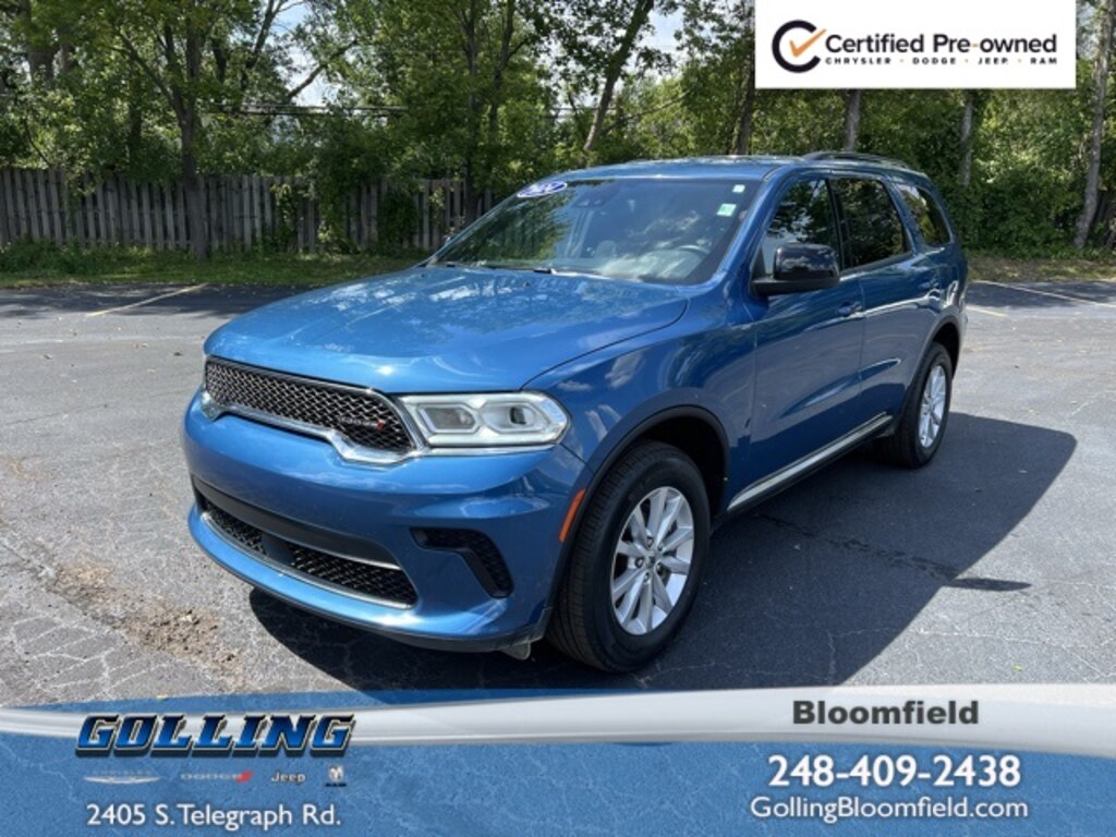 Certified. We are Michigans #1 Certified Pre-Owned Dealer, 3 month / 3000 mile bumper to bumper warranty with no deductible, 7-year/100,000-mile warranty!, Durango SXT Plus, 4D Sport Utility, 3.6L V6 24V VVT, 8-Speed Automatic, AWD, Frostbite Pearlcoat, Black w/Cloth Bucket Seats w/Shift Insert, Alternator 180 Amp, Wiring Harness 7 & 4 Pin, 2nd Row 60/40 Fold & Tumble Seat, 3rd Row Remote Headrest Dumping, 3rd Row Seat, 3rd Row Seating Group, 7-Passenger Seating, Adaptive Cruise Control w/Stop, Alloy wheels, Apple CarPlay, Apple CarPlay/Android Auto, Auto-dimming Rear-View mirror, Blind Spot w/Trailer Detection, Brake assist, Bumpers: body-color, Class IV Receiver Hitch, Cloth Bucket Seats w/Shift Insert, Cruise control, Delay-off headlights, Driver door bin, Driver vanity mirror, Electronic Stability Control, Full Speed Forward Collision Warning Plus, Fully automatic headlights, Google Android Auto, Heated door mirrors, Heated Front Seats, Heated Steering Wheel, Heavy-Duty Engine Cooling, Illuminated entry, Integrated Voice Command w/Bluetooth, Leather steering wheel, Outside temperature display, Overhead console, Panic alarm, ParkView Rear Back-Up Camera, Passenger vanity mirror, Power door mirrors, Power driver seat, Power Sunroof, Power windows, Quick Order Package 2BK SXT Plus, Radio: Uconnect 4 w/8.4" Display, Rear Load Leveling Suspension, Rear reading lights, Rear seat center armrest, Remote keyless entry, Roof rack, Spoiler, Steering wheel mounted audio controls, Tachometer, Telescoping steering wheel, Tilt steering wheel, Trailer Brake Control, Trailer Tow Group IV. CARFAX One-Owner. Clean CARFAX.