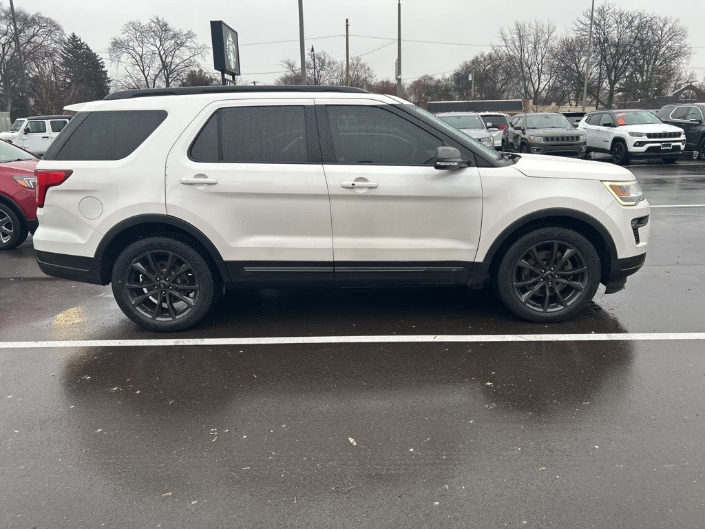 The all new Golling CDJR of Grosse Pointe is very proud to offer this 2019 Ford Explorer XLT in White Platinum Clearcoat Metallic with Ebony Black W/Fire Orange Leather. This Explorer is very well equipped with Class III Trailer Tow Package, Comfort Package (ActiveX Seating Material Heated Front Bucket Seats), Driver Connect Package (2 Driver Configurable 4.2" Color LCD Displays, Auto-Dimming Rear-View Mirror, and FordPass Connect), Equipment Group 202A (8-Way Power Passenger Seat, BLIS Blind Spot Information System, Dual-Zone Electronic Automatic Temperature Ctrl, Forward Sensing System, Heated Steering Wheel, LED Fog Lamps, LED Signature Lighting, Power & Heated Glass Sideview Mirrors, Power Liftgate, Radio: AM/FM Stereo w/7 Speakers, and Remote Start System), XLT Sport Appearance Package (Black Roof Rack Side Rails, Ebony Black Unique Door-Trim Panel Insert, EXPLORER Badge on Hood, EXPLORER Unique Branded Front Floor Mats, Leather-Trimmed Bucket Seats, Lower Bodyside Cladding Insert, Lower Door Trim, Lower Front & Rear Bumper Covers, Magnetic Met-Painted Grille Bars w/Mesh Insert, Rear Bumper Step Pad, Sideview Mirror Caps, and Wheels: 20" x 8.5" Magnetic Met Painted 10-Spoke), XLT Technology Feature Bundle (Universal Garage Door Opener (UGDO) and Voice-Activated Touchscreen Navigation System), 2nd Row Bucket Seats, 3.65 Non-Limited Slip Axle Ratio, 3rd row seats: split-bench, 4-Wheel Disc Brakes, 6 Speakers, ABS brakes, Air Conditioning, Alloy wheels, AM/FM radio: SiriusXM, AM/FM Stereo, Brake assist, Bumpers: body-color, Compass, Delay-off headlights, Driver door bin, Driver vanity mirror, Dual front impact airbags, Dual front side impact airbags, Electronic Stability Control, Emergency communication system: 911 Assist, Exterior Parking Camera Rear, Four wheel independent suspension, Front & Second Row Floor Liners, Front anti-roll bar, Front Bucket Seats, Front Center Armrest, Front License Plate Bracket, Front reading lights, Fully automatic headlights, Heated door mirrors, Illuminated entry, Inflatable Rear Safety Belts, Knee airbag, Leather steering wheel, Low tire pressure warning, Occupant sensing airbag, Outside temperature display, Overhead airbag, Overhead console, Panic alarm, Passenger door bin, Passenger vanity mirror, Power door mirrors, Power driver seat, Power passenger seat, Power steering, Power windows, Rear air conditioning, Rear anti-roll bar, Rear Parking Sensors, Rear reading lights, Rear seat center armrest, Rear window defroster, Rear window wiper, Remote keyless entry, Roof rack: rails only, Security system, Speed control, Speed-sensing steering, Speed-Sensitive Wipers, Split folding rear seat, Spoiler, Steering wheel mounted audio controls, SYNC Communication & Entertainment System, Tachometer, Telescoping steering wheel, Tilt steering wheel, Traction control, Trip computer, Twin Panel Moonroof, Unique Cloth Bucket Seats, Variably intermittent wipers, and Wheels: 18" 5-Split-Spoke Sparkle Silver-Painted.