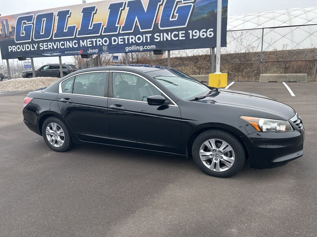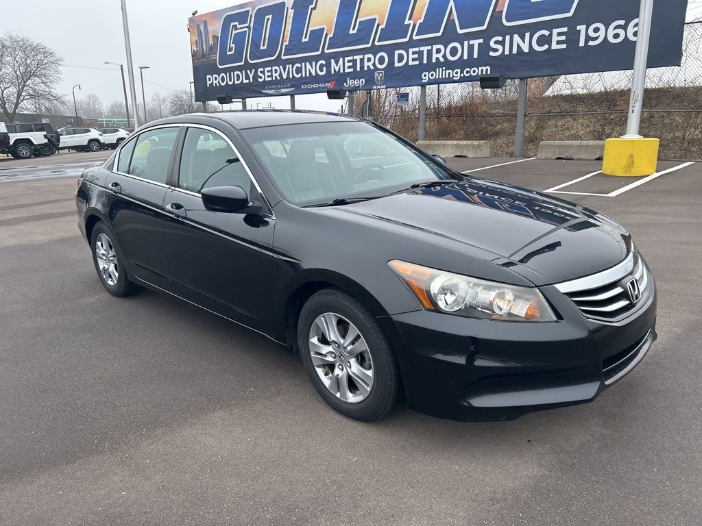 Recent Arrival! The all new Golling CDJR of Grosse Pointe is pumped up to offer this 2012 Honda Accord SE in Crystal Black Pearl with Black Leather. This Accord is very well equipped with 16" x 6.5" Alloy Wheels, 160-Watt AM/FM/CD Audio System, 4-Wheel Disc Brakes, 6 Speakers, ABS brakes, Air Conditioning, Alloy wheels, AM/FM radio, Anti-whiplash front head restraints, Brake assist, Bumpers: body-color, CD player, Delay-off headlights, Driver door bin, Driver vanity mirror, Dual front impact airbags, Dual front side impact airbags, Electronic Stability Control, Four wheel independent suspension, Front anti-roll bar, Front Bucket Seats, Front Center Armrest, Front reading lights, Heated Front Bucket Seats, Heated front seats, Illuminated entry, Leather Shift Knob, Leather-Trimmed Seat Trim, Low tire pressure warning, Occupant sensing airbag, Overhead airbag, Overhead console, Panic alarm, Passenger door bin, Passenger vanity mirror, Power door mirrors, Power driver seat, Power steering, Power windows, Radio data system, Rear anti-roll bar, Rear seat center armrest, Rear window defroster, Remote keyless entry, Security system, Speed control, Speed-sensing steering, Speed-Sensitive Wipers, Steering wheel mounted audio controls, Tachometer, Telescoping steering wheel, Tilt steering wheel, Traction control, and Variably intermittent wipers.