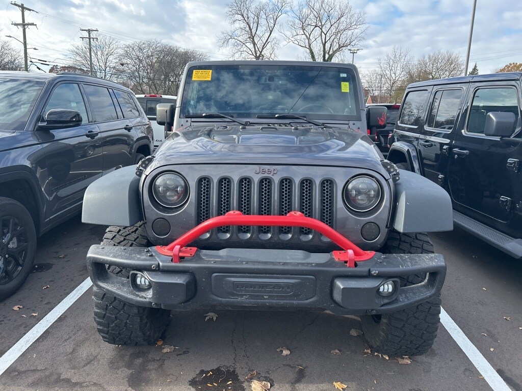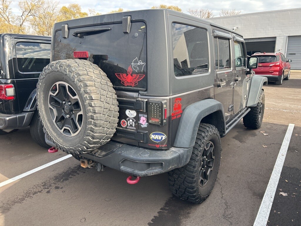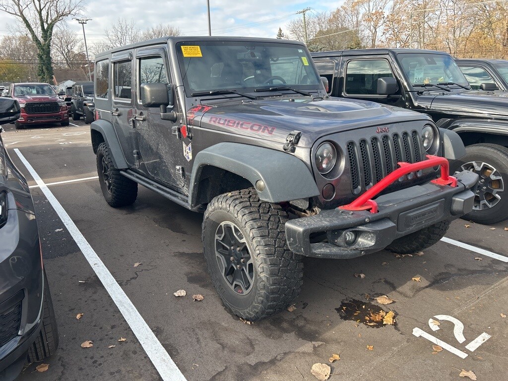 Recent Arrival! The all new Golling CDJR of Grosse Pointe is pleased to offer this 2014 Jeep Wrangler Unlimited Rubicon in Granite Crystal Metallic Clearcoat with Black Leather. This Wrangler is very well equipped with Connectivity Group (Remote USB Port, Tire Pressure Monitoring Display, Uconnect Voice Command w/Bluetooth, and Vehicle Information Center), Max Tow Package (Class II Receiver Hitch and Trailer Tow w/4-Pin Connector Wiring), Quick Order Package 23J Rubicon X (Black Fuel Filler Door, Black/Chrome Screws Fuel Filler Door, Chrome/Leather Wrapped Shift Knob, Driver Height Adjuster Seat, Front Seat Back Map Pockets, Heated Front Seats, Hood w/Power Dome, Leather Trimmed Bucket Seats, Low Gloss Black Wrangler Decal, MOPAR Jeep Trail Rated Kit, MOPAR Rock Rails, MOPAR Slush Mats, Premium Black Sunrider Soft Top, Premium EVIC Message Center, Red Front & Rear Tow Hooks, Red Trail Rated Badge, Rubicon Hood Decal, Rubicon X, Silver Interior Accents, Steel Front Bumper, Steel Rear Bumper, Sunrider Soft Top, and Wheels: 17" x 7.5" Polished Semi-Gloss Black), 1-Year SIRIUSXM Travel Link Service, 17" x 7.5" Polished Mineral Gray Wheels, 4-Wheel Disc Brakes, 40GB Hard Drive w/28GB Available, 6.5" Touch Screen Display, 7 Speakers, ABS brakes, Air Conditioning, Alloy wheels, AM/FM radio, Audio Jack Input for Mobile Devices, Auto-dimming Rear-View mirror, Black 3-Piece Hard Top, Brake assist, CD player, Cloth Bucket Seats, Compass, Delete Sunrider Soft Top, Driver door bin, Driver vanity mirror, Dual front impact airbags, Electronic Stability Control, Freedom Panel Storage Bag, Front anti-roll bar, Front Bucket Seats, Front Center Armrest w/Storage, Front fog lights, Front reading lights, Fully automatic headlights, GPS Navigation, Heated door mirrors, Illuminated entry, Integrated roll-over protection, Leather steering wheel, Low tire pressure warning, Manufacturer's Statement of Origin, Occupant sensing airbag, Outside temperature display, Panic alarm, Passenger door bin, Passenger vanity mirror, Performance Suspension, Power door mirrors, Power steering, Power windows, Radio data system, Radio: Uconnect 130 AM/FM/CD/MP3, Radio: Uconnect 430N CD/DVD/MP3/HDD/NAV, Rear anti-roll bar, Rear Window Defroster, Rear Window Wiper/Washer, Remote keyless entry, Security system, SIRIUSXM Travel Link, Speed control, Split folding rear seat, Steering wheel mounted audio controls, Tachometer, Tilt steering wheel, Traction control, Trip computer, and Variably intermittent wipers.