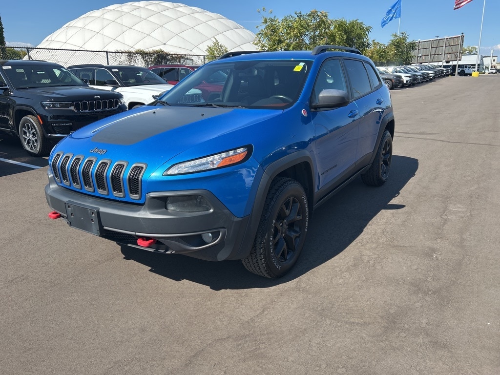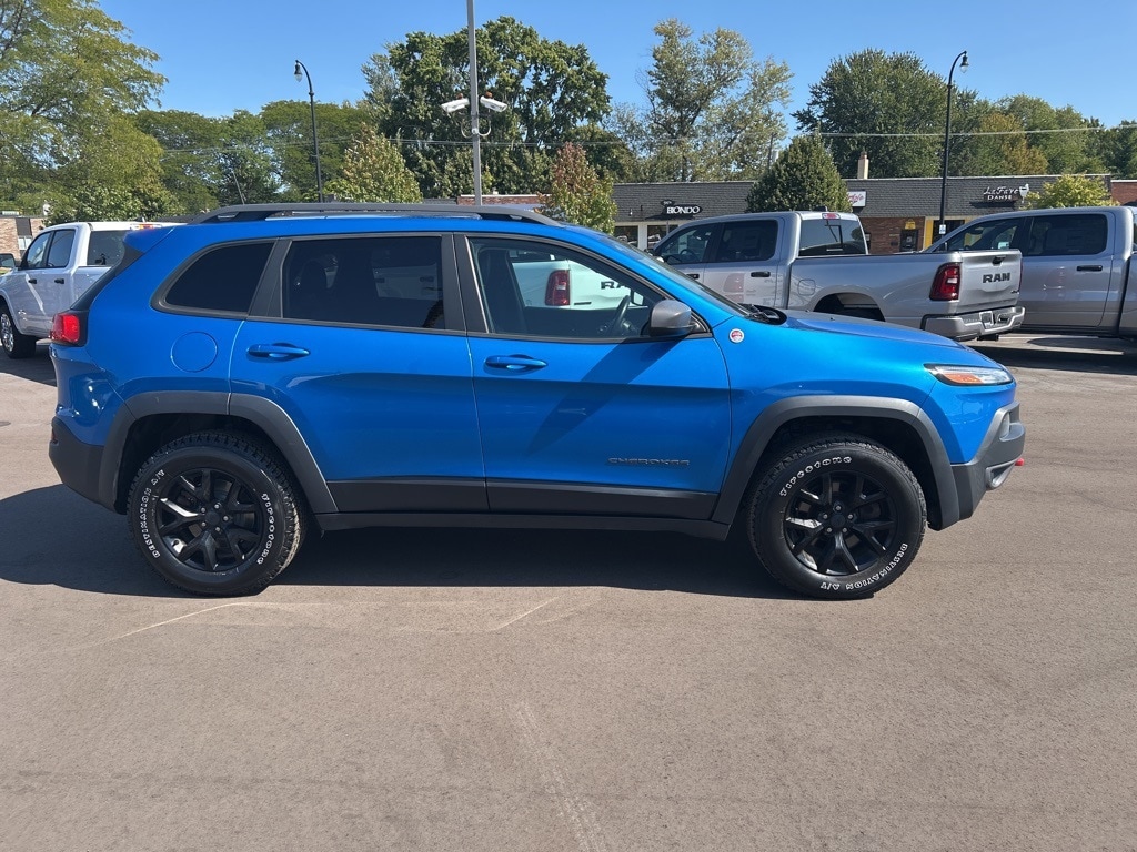 The all new Golling CDJR of Grosse Pointe is excited to offer this 2017 Jeep Cherokee Trailhawk in Hydro Blue Pearlcoat with Black Leather. This Cherokee is very well equipped with Cold Weather Group (DISC) (Engine Block Heater, Exterior Mirrors w/Heating Element, Heated Front Seats, Heated Steering Wheel, Jeep Rack Off Road Accessory Kit, Power Heated Mirrors, Remote Start System, and Windshield Wiper De-Icer), Quick Order Package 27E (DISC), Trailer Tow Group (7 & 4 Pin Wiring Harness, Auxiliary Transmission Oil Cooler, Class III Receiver Hitch, and Trailer Tow Wiring Harness), 17" x 7.5" Aluminum Wheels, 4-Wheel Disc Brakes, 4.08 Axle Ratio, 6 Speakers, 600 Amp Maintenance Free Battery, 8.4" Touchscreen Display, ABS brakes, Air Conditioning, Alloy wheels, AM/FM radio: SiriusXM, Anti-whiplash front head restraints, Brake assist, Compass, Delay-off headlights, Driver door bin, Driver vanity mirror, Dual front impact airbags, Dual front side impact airbags, Electronic Stability Control, Emergency communication system: Uconnect Access, Engine Oil Cooler, Four wheel independent suspension, Front anti-roll bar, Front Bucket Seats, Front Center Armrest, Front fog lights, Front reading lights, Fully automatic headlights, High intensity discharge headlights: Bi-Xenon, Illuminated entry, Integrated Voice Command w/Bluetooth, Knee airbag, Leather Shift Knob, Low tire pressure warning, Occupant sensing airbag, Off Road Suspension, Outside temperature display, Overhead airbag, Overhead console, Panic alarm, ParkView Rear Back-Up Camera, Passenger door bin, Passenger vanity mirror, Power door mirrors, Power steering, Power windows, Premium Leather Trimmed Bucket Seats, Radio data system, Radio: Uconnect 3C w/8.4" Display, Rear anti-roll bar, Rear reading lights, Rear seat center armrest, Rear side impact airbag, Rear window defroster, Rear window wiper, Remote keyless entry, Roof rack: rails only, Speed control, Speed-sensing steering, Split folding rear seat, Spoiler, Steering wheel mounted audio controls, Tachometer, Telescoping steering wheel, Tilt steering wheel, Traction control, Trip computer, Uconnect Access, Variably intermittent wipers, Voltmeter, and Wheels: 17" x 7.5" Black Painted Aluminum.