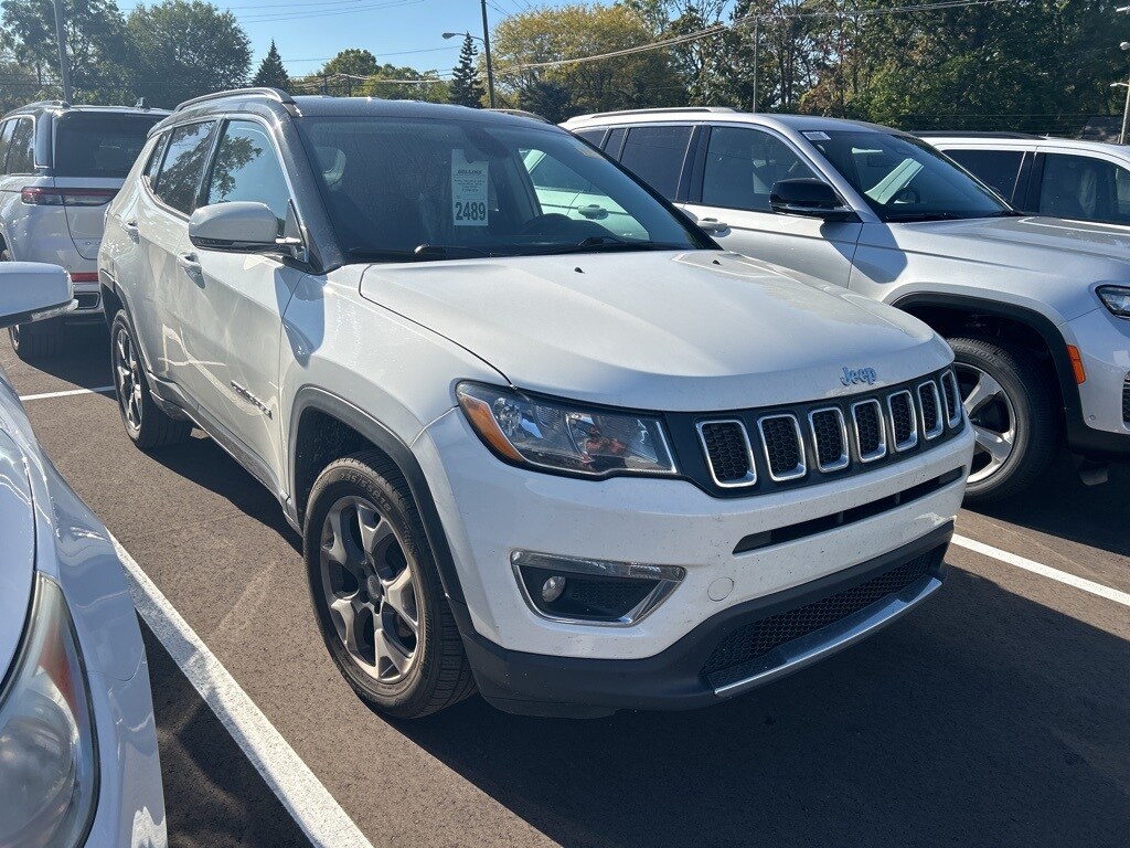 Recent Arrival! The all new Golling CDJR of Grosse Pointe is pumped up to offer this 2019 Jeep Compass Limited in White Clearcoat with Black Leather. This Compass is very well equipped with Quick Order Package 27G (DISC), 3.73 Axle Ratio, 4-Wheel Disc Brakes, 6 Speakers, ABS brakes, Air Conditioning, Alloy wheels, AM/FM radio: SiriusXM, Anti-whiplash front head restraints, Apple CarPlay/Android Auto, Auto-dimming Rear-View mirror, Automatic temperature control, Brake assist, Bumpers: body-color, Compass, Delay-off headlights, Driver door bin, Driver vanity mirror, Dual front impact airbags, Dual front side impact airbags, Electronic Stability Control, Four wheel independent suspension, Front anti-roll bar, Front Bucket Seats, Front Center Armrest w/Storage, Front dual zone A/C, Front fog lights, Front reading lights, Fully automatic headlights, Google Android Auto, GPS Antenna Input, Heated door mirrors, Heated front seats, Heated steering wheel, Illuminated entry, Knee airbag, Leather Shift Knob, Leather Trimmed Bucket Seats, Low tire pressure warning, Manufacturer's Statement of Origin, Occupant sensing airbag, Outside temperature display, Overhead airbag, Overhead console, Panic alarm, ParkView Rear Back-Up Camera, Passenger door bin, Passenger vanity mirror, Power door mirrors, Power driver seat, Power steering, Power windows, Radio: Uconnect 4 w/8.4" Display, Rear anti-roll bar, Rear seat center armrest, Rear window defroster, Rear window wiper, Remote keyless entry, Roof rack: rails only, Security system, Speed control, Split folding rear seat, Spoiler, Steering wheel mounted audio controls, Tachometer, Telescoping steering wheel, Tilt steering wheel, Traction control, Trip computer, Turn signal indicator mirrors, USB Host Flip, Variably intermittent wipers, and Wheels: 18" x 7.0" Polished/Gray Pockets Aluminum.