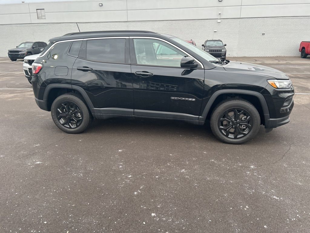 New Price! Recent Arrival! The all new Golling CDJR of Grosse Pointe is pumped up to offer this 2024 Jeep Compass Latitude in Diamond Black Crystal Pearlcoat with Black Cloth. This Compass is very well equipped with Quick Order Package 29J Latitude, 17" x 7" Aluminum Wheels, 3.73 Final Drive Ratio, 4-Wheel Disc Brakes, 6 Speakers, ABS brakes, Air Conditioning, Alloy wheels, AM/FM radio: SiriusXM, Auto High-beam Headlights, Brake assist, Bumpers: body-color, Compass, Delay-off headlights, Driver door bin, Driver vanity mirror, Dual front impact airbags, Dual front side impact airbags, Electronic Stability Control, Emergency communication system: Jeep Connect, Four wheel independent suspension, Front anti-roll bar, Front Bucket Seats, Front Center Armrest w/Storage, Front fog lights, Front reading lights, Fully automatic headlights, Heated door mirrors, Illuminated entry, Knee airbag, Leather Shift Knob, Leather steering wheel, Low tire pressure warning, Occupant sensing airbag, Outside temperature display, Overhead airbag, Overhead console, Panic alarm, ParkView Rear Back-Up Camera, Passenger door bin, Passenger vanity mirror, Power door mirrors, Power steering, Power windows, Premium Cloth/Vinyl Bucket Seats, Radio: Uconnect 5 w/10.1" Display, Rear anti-roll bar, Rear seat center armrest, Rear window defroster, Rear window wiper, Remote keyless entry, Security system, Speed control, Split folding rear seat, Spoiler, Steering wheel mounted audio controls, Tachometer, Telescoping steering wheel, Tilt steering wheel, Traction control, Trip computer, and Variably intermittent wipers.