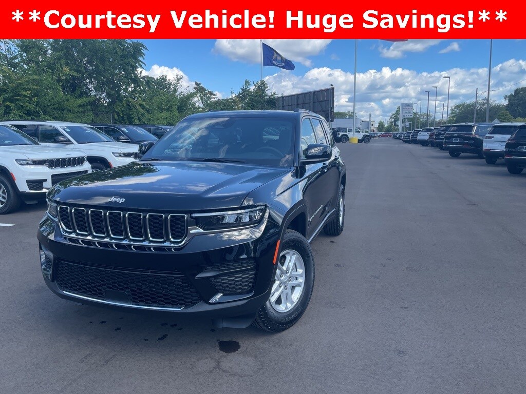 The all new Golling CDJR of Grosse Pointe is very proud to offer this 2025 Jeep Grand Cherokee Laredo in Diamond Black Crystal Pearlcoat with Black Cloth. This Grand Cherokee is very well equipped with Luxury Tech Group I (115V Auxiliary Power Outlet, Heated Front Seats, Heated Steering Wheel, Power Liftgate, Rain Sensitive Windshield Wipers, Remote Start System, Secondary Active Grille Shutters, Selectable Tire Fill Alert, and Wireless Charging Pad), Quick Order Package 23A Laredo, 4-Wheel Disc Brakes, 6 Speakers, ABS brakes, Air Conditioning, Alloy wheels, AM/FM radio: SiriusXM, Anti-whiplash front head restraints, Automatic temperature control, Brake assist, Bumpers: body-color, Cloth Seats, Compass, Delay-off headlights, Driver door bin, Driver vanity mirror, Dual front impact airbags, Dual front side impact airbags, Electronic Stability Control, Emergency communication system, Four wheel independent suspension, Front anti-roll bar, Front Bucket Seats, Front Center Armrest w/Storage, Front dual zone A/C, Front reading lights, Fully automatic headlights, Heated door mirrors, Illuminated entry, Knee airbag, Low tire pressure warning, Model Year Tracking, Normal Duty Suspension, Occupant sensing airbag, Outside temperature display, Overhead airbag, Overhead console, Panic alarm, ParkView Rear Back-Up Camera, Passenger door bin, Passenger vanity mirror, Power door mirrors, Power driver seat, Power steering, Power windows, Radio data system, Radio: Uconnect 5 w/8.4" Display, Rear anti-roll bar, Rear reading lights, Rear window defroster, Rear window wiper, Remote keyless entry, Security system, Speed control, Speed-Sensitive Wipers, Split folding rear seat, Spoiler, Steering wheel mounted audio controls, Tachometer, Telescoping steering wheel, Tilt steering wheel, Traction control, Trip computer, Variably intermittent wipers, Voltmeter, and Wheels: 17" x 6.5" Fully Painted Aluminum.
